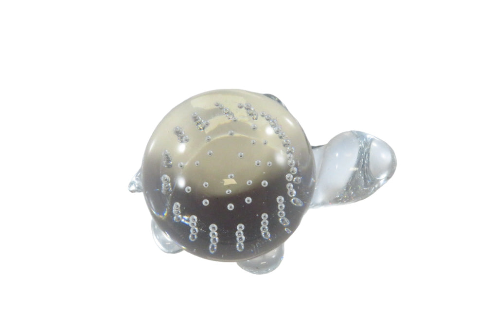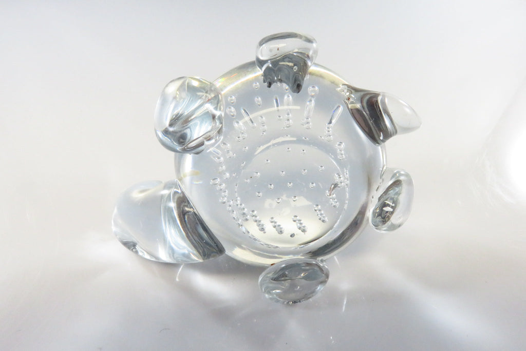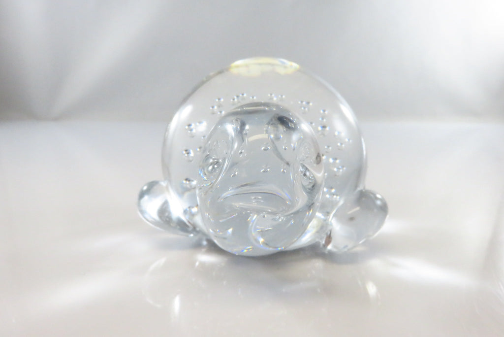 Crystal Clear Bubble Glass Turtle Paperweight Short Neck 3 1/4"