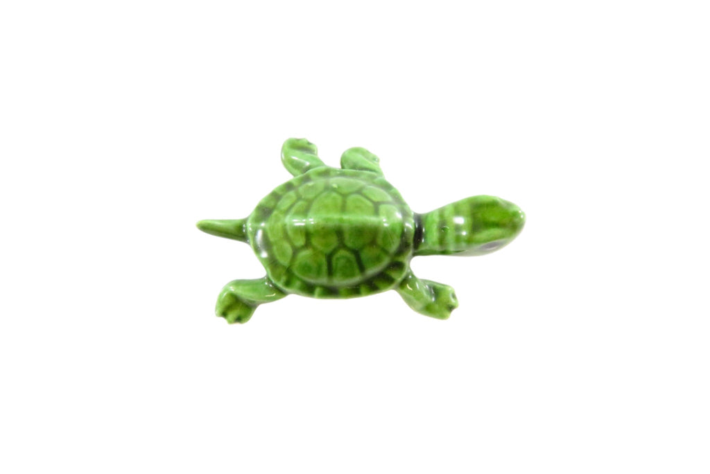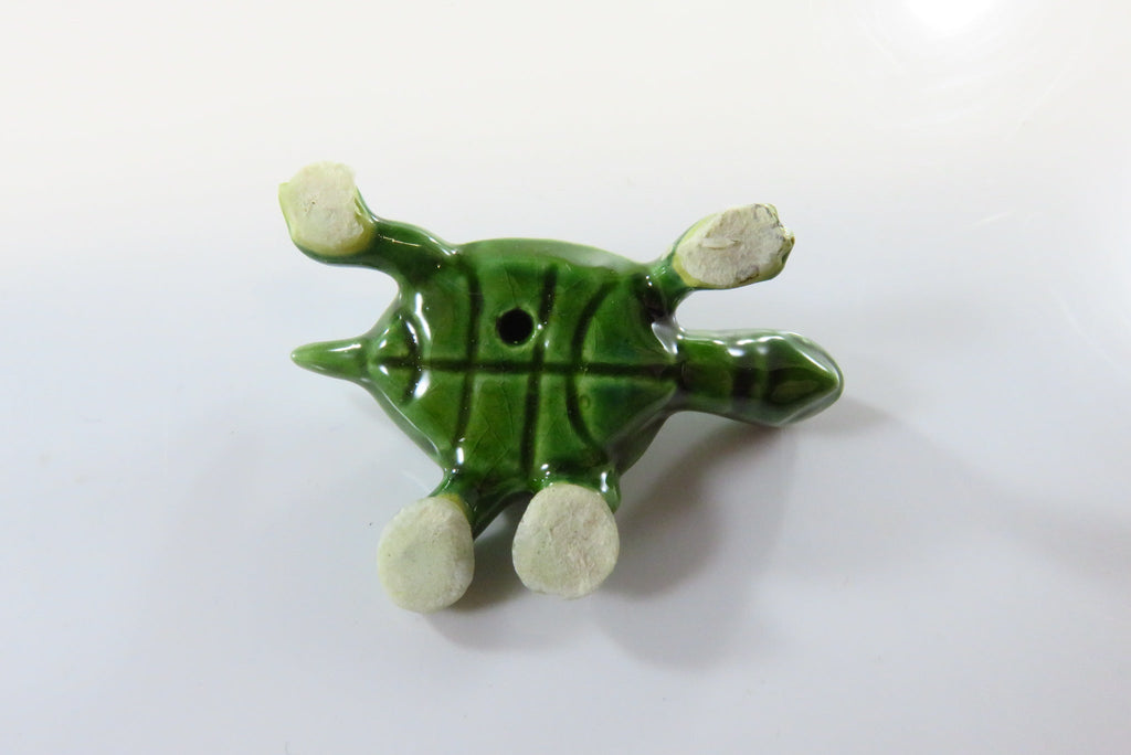 Lovely Miniature Ceramic Glossy Green Turtle with Black Eyes 1 5/8"