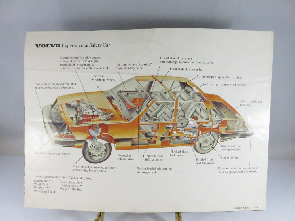 Volvo Experimental Safety Car 1972 VESC Brochure Tri-Fold Printed USA