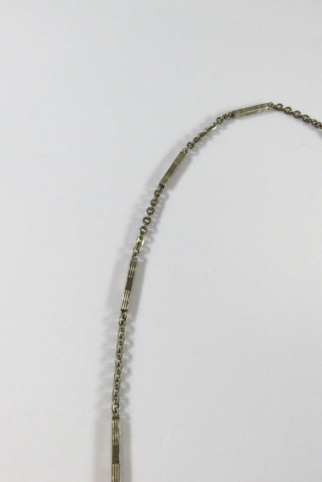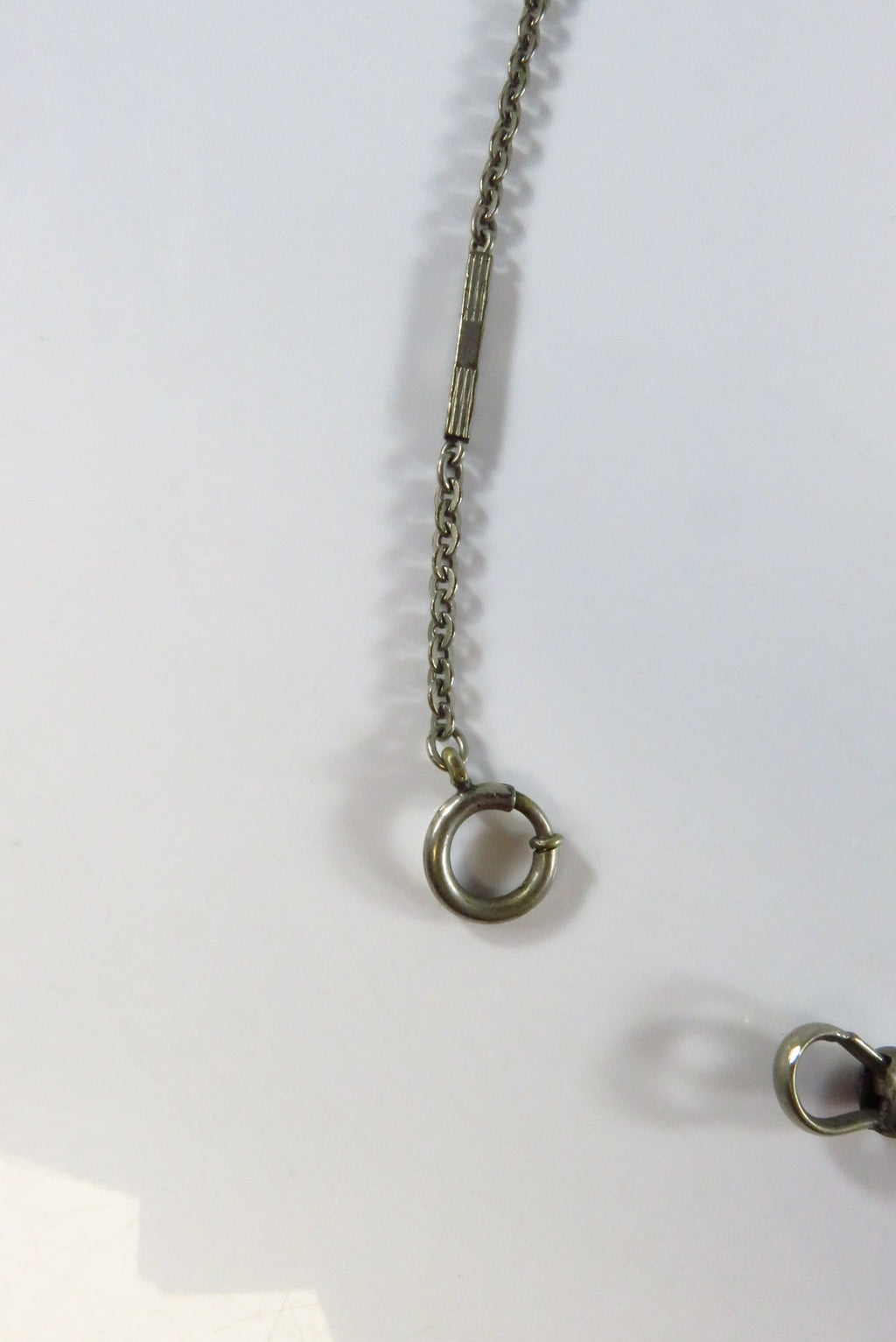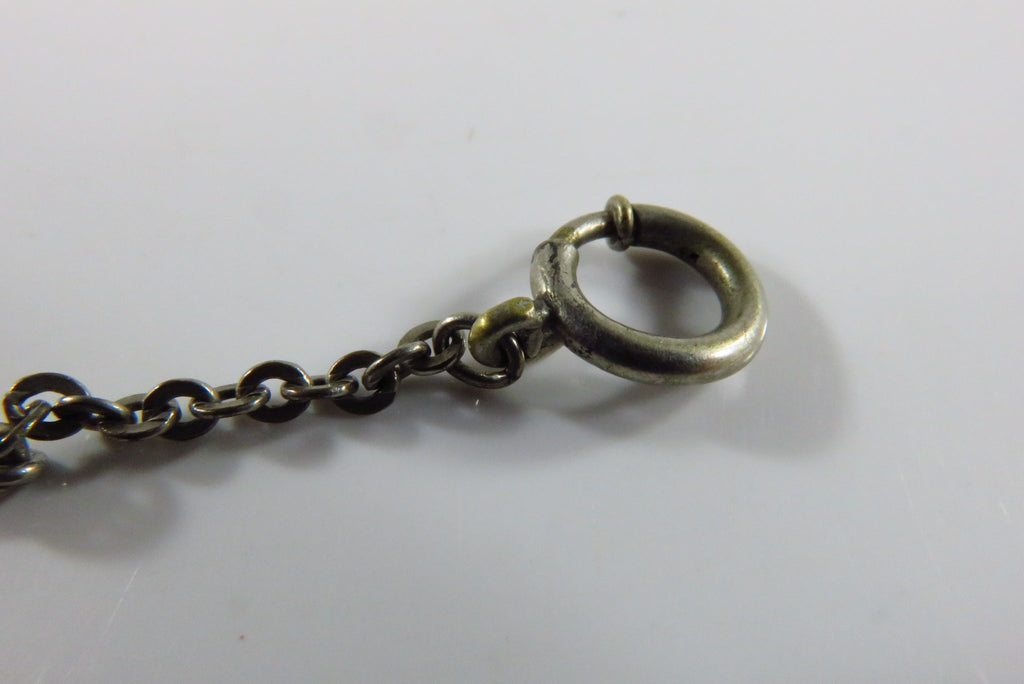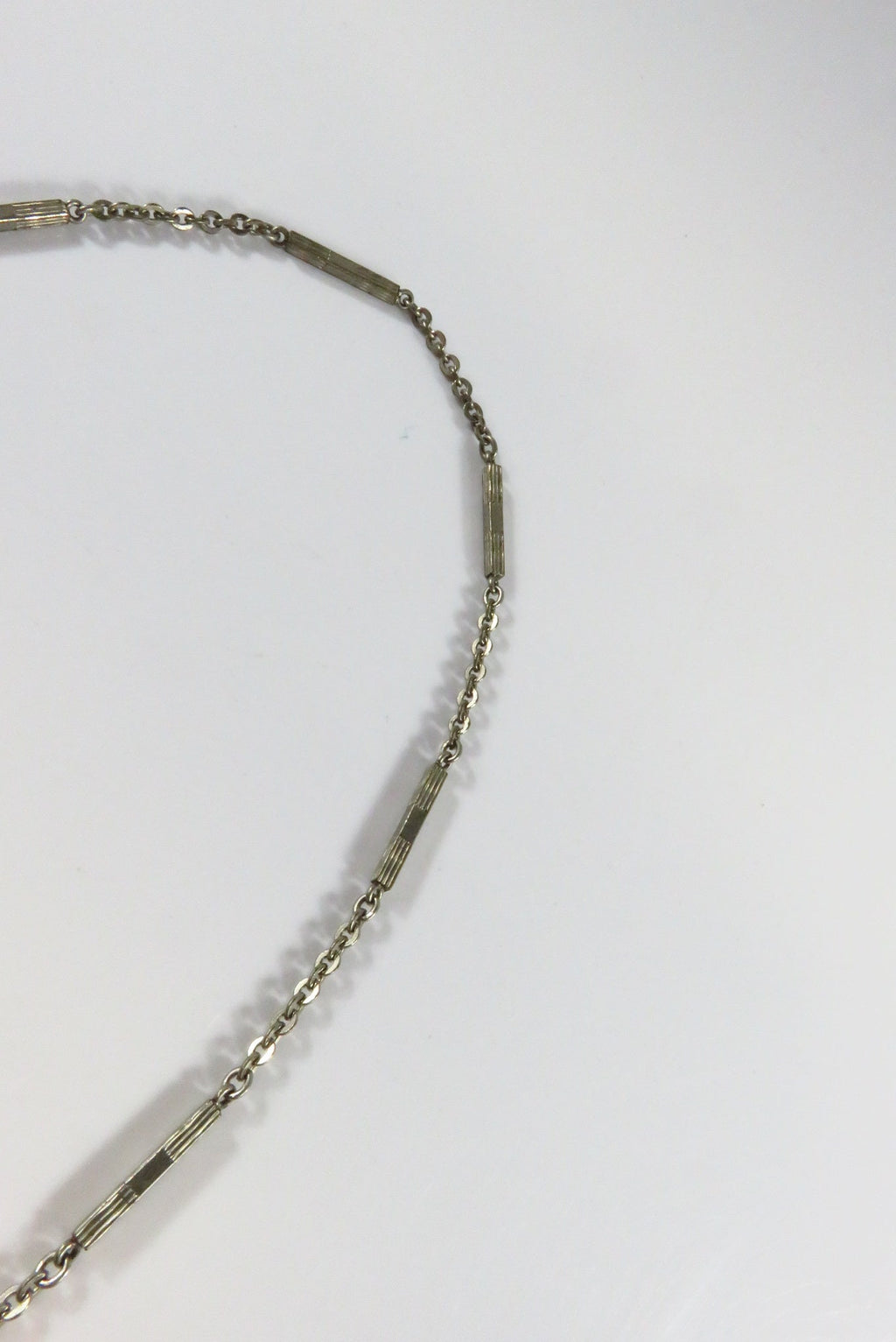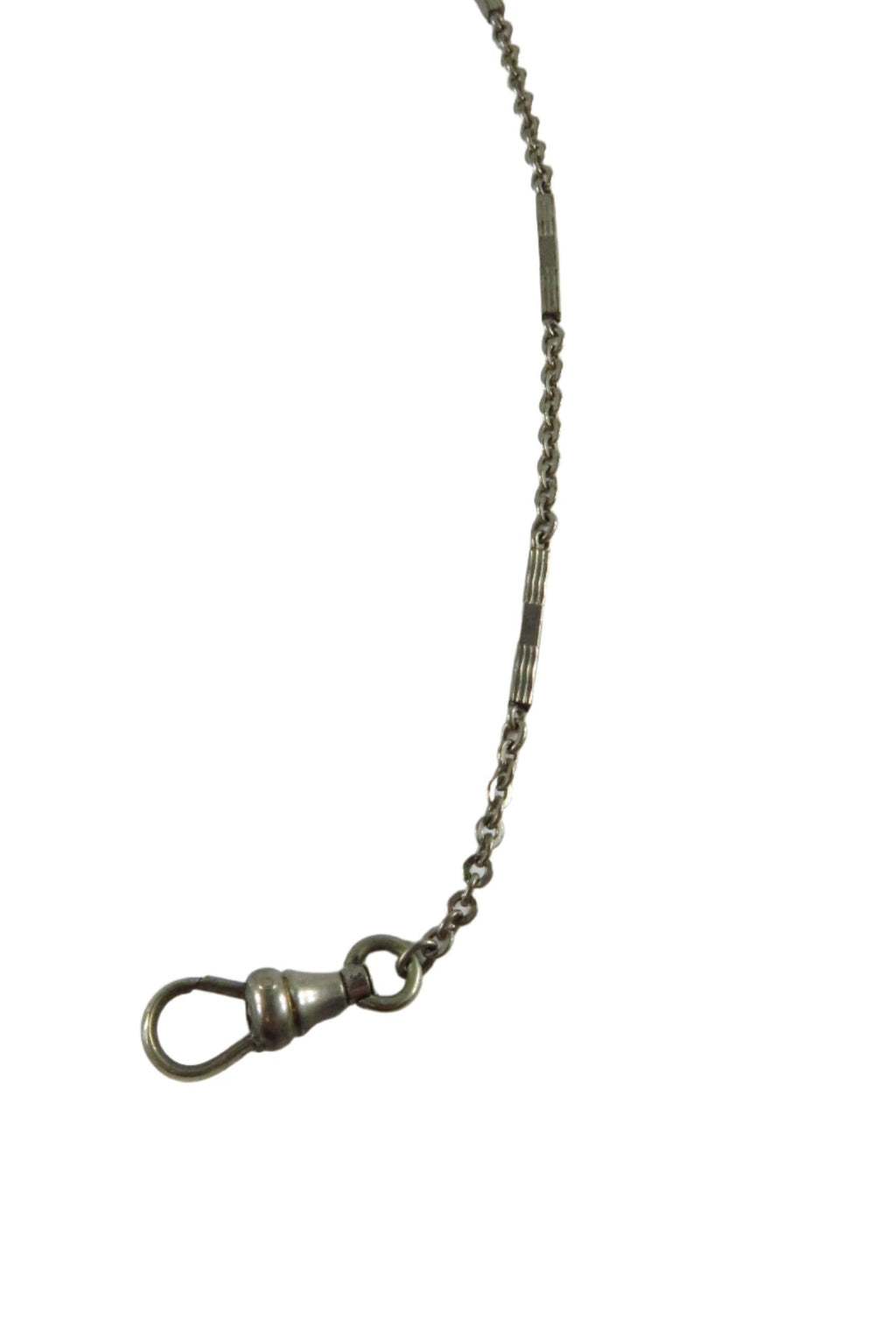 Antique Deco Style White Metal Unsigned Alt Bar Chain Pocket Watch Chain 13 1/2"