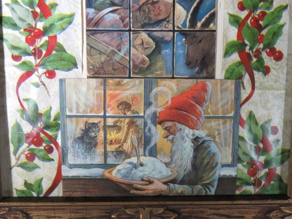 Antique 15.75 x 11.75 Framed Collage of 3 Jenny Nystrom Christmas Postcards Wrap