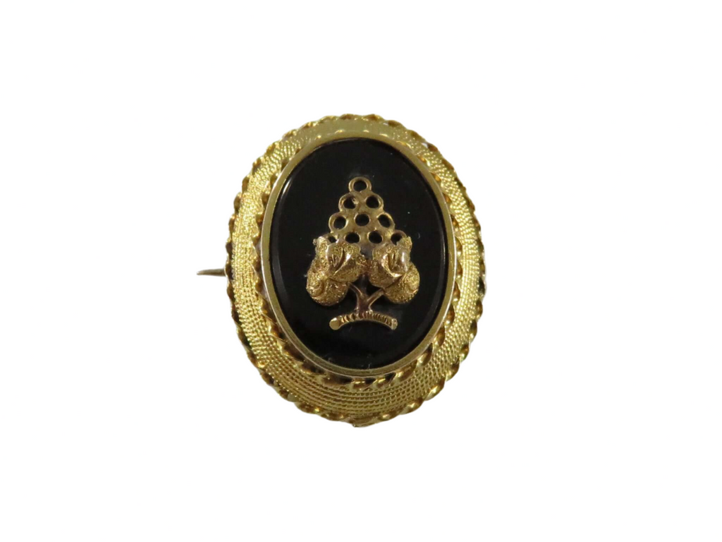Antique 14K Gold Onyx Grapevine Motif Collar Pin for Restoration