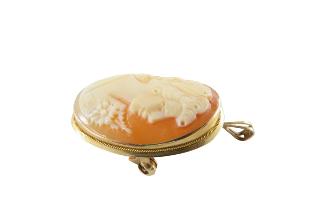 Michael Anthony 14K Gold Carved Shell Cameo Portrait Pendant Brooch