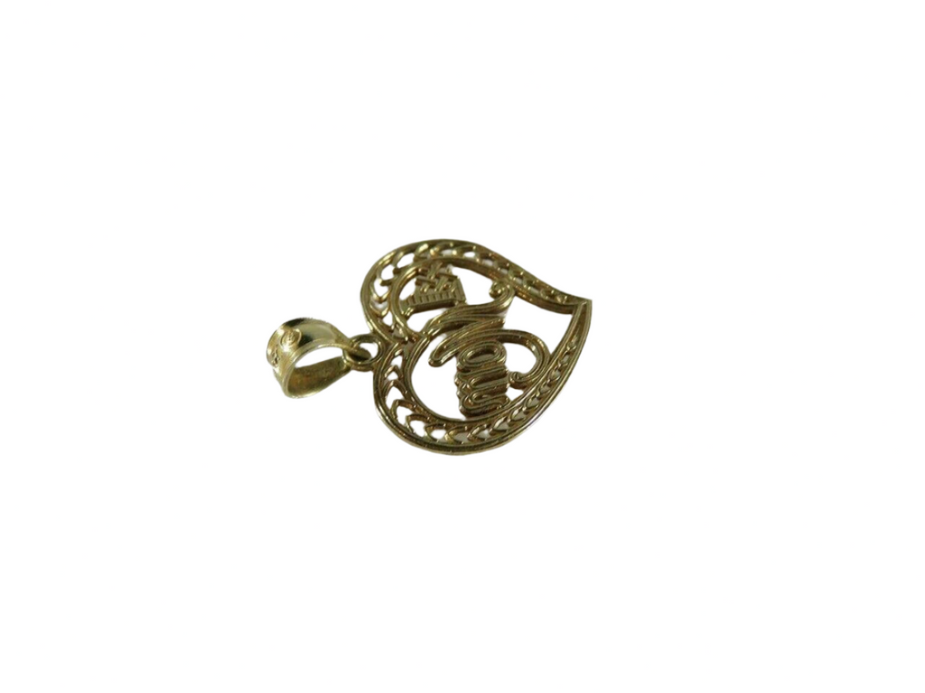 10K Yellow Gold #1 Mom Heart Pendant, Approx. 5/8" × 5/8", 0.7g