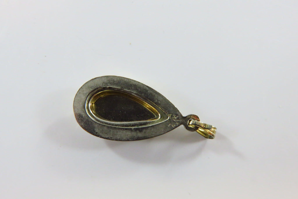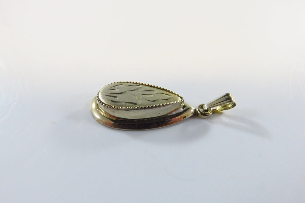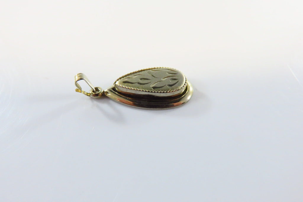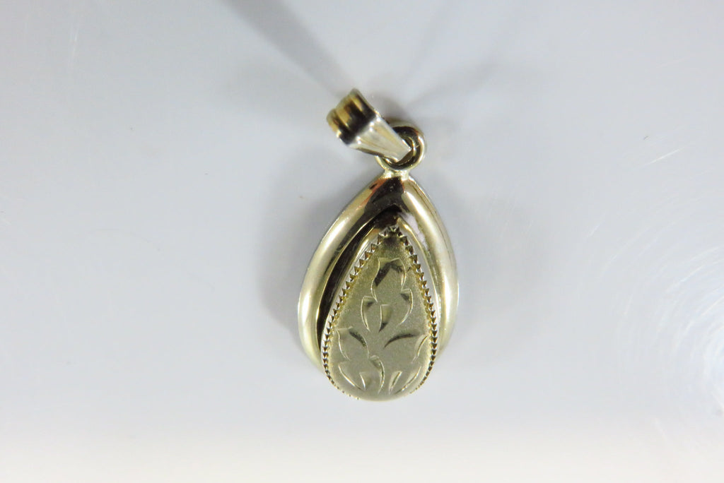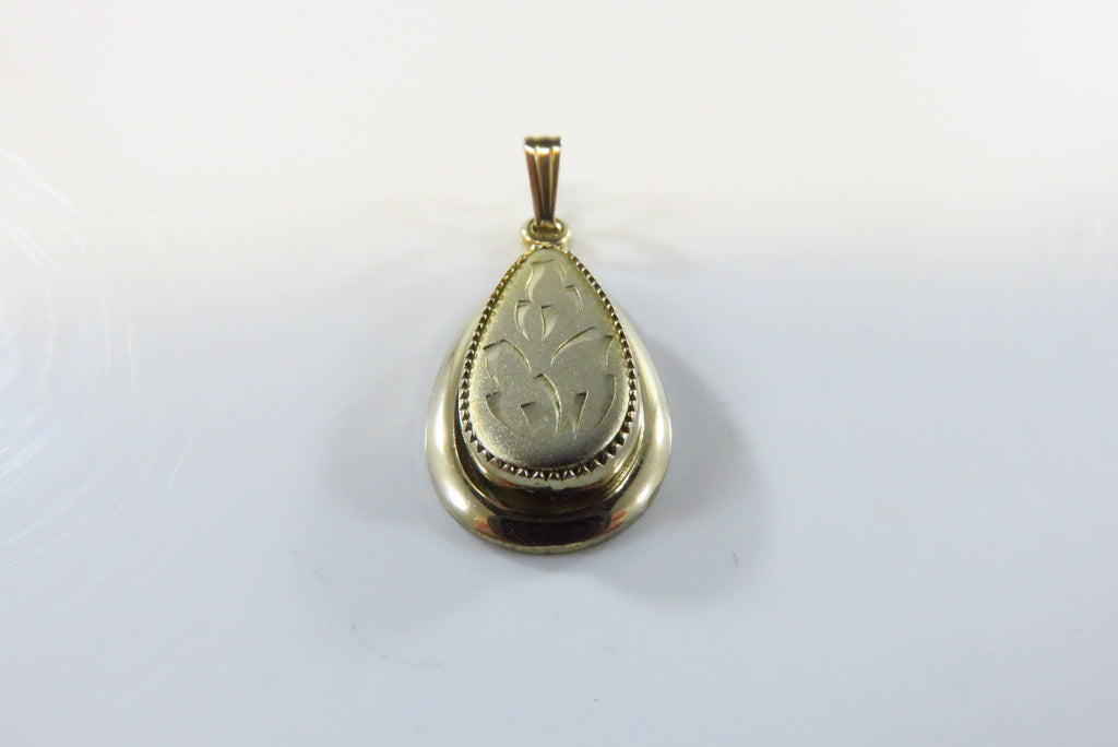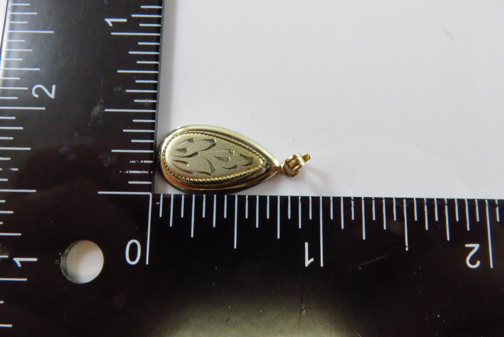 Gold Filled Tear Drop Pendant Vintage Etched Design Sign TK