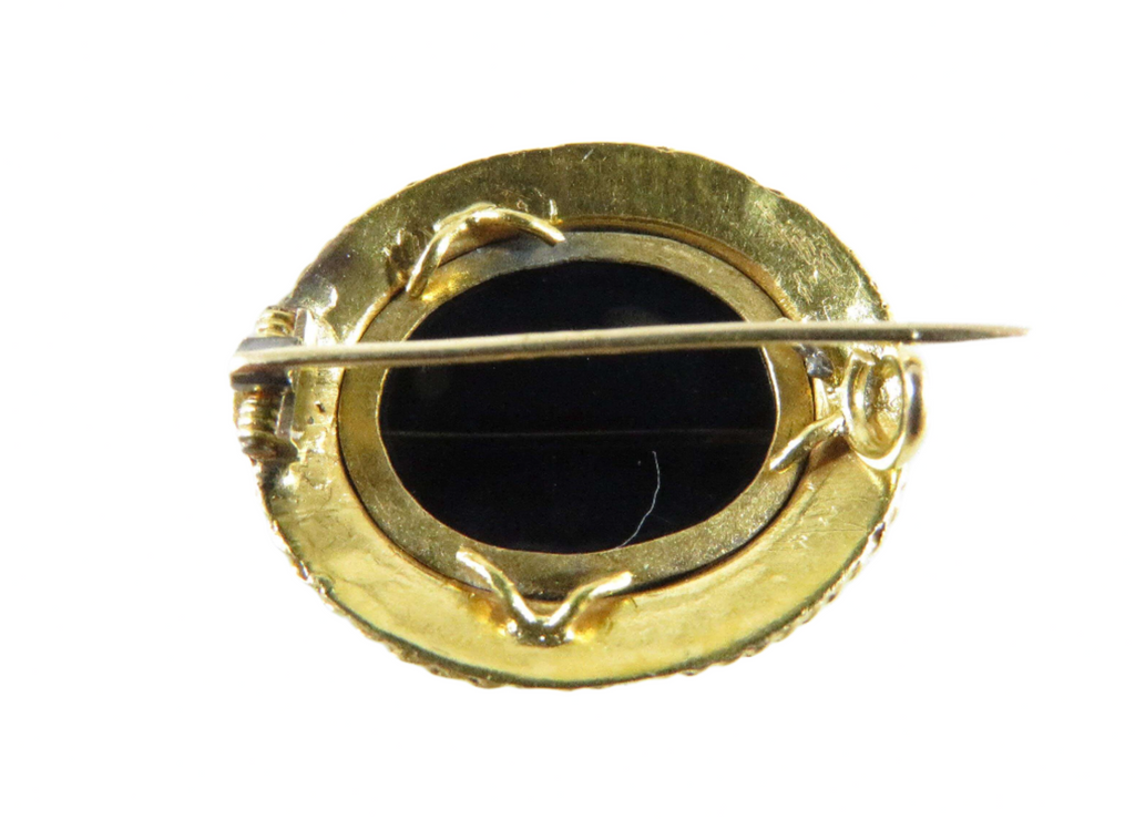 Victorian 18K Bezel & Wirework Oval Onyx Brooch with C-Clasp