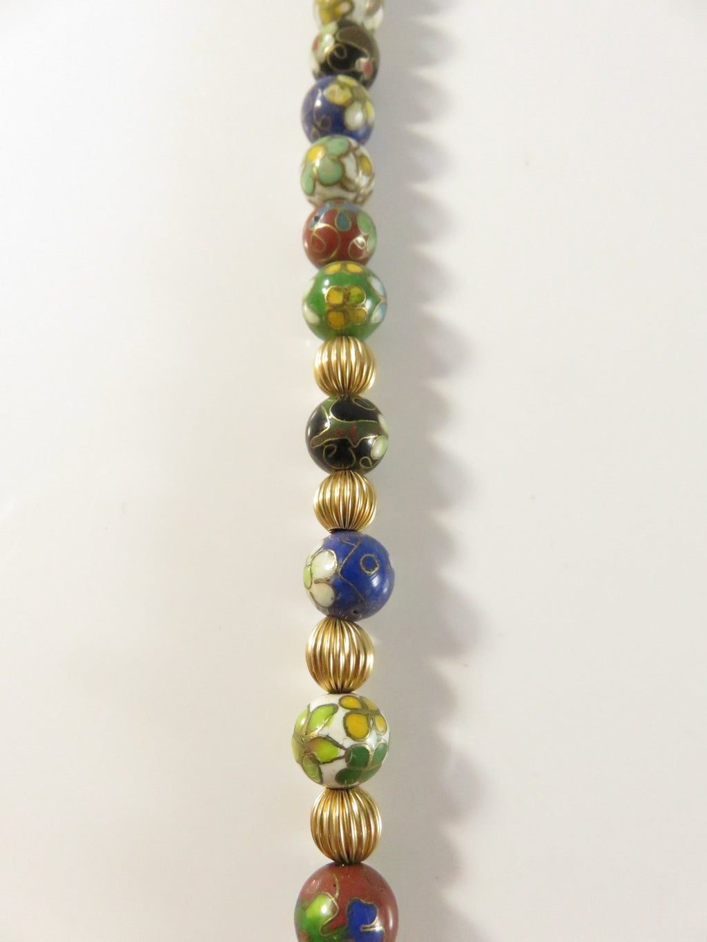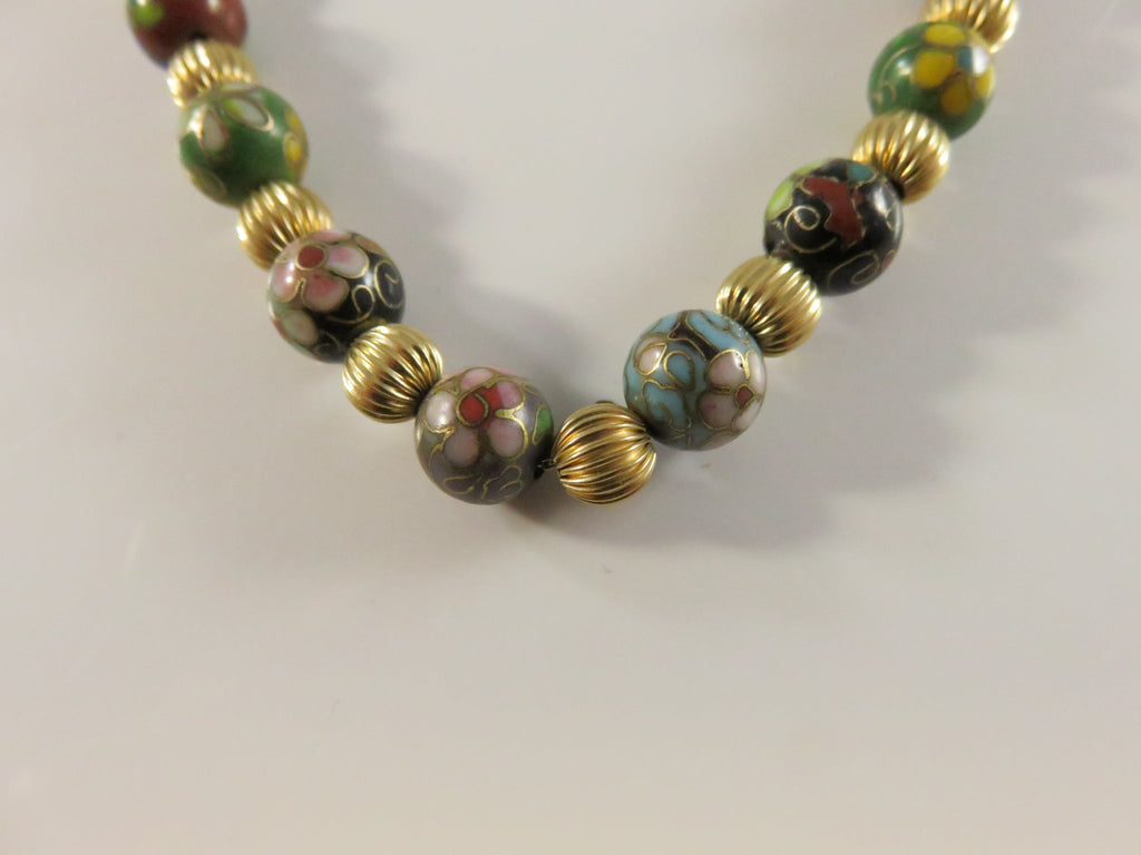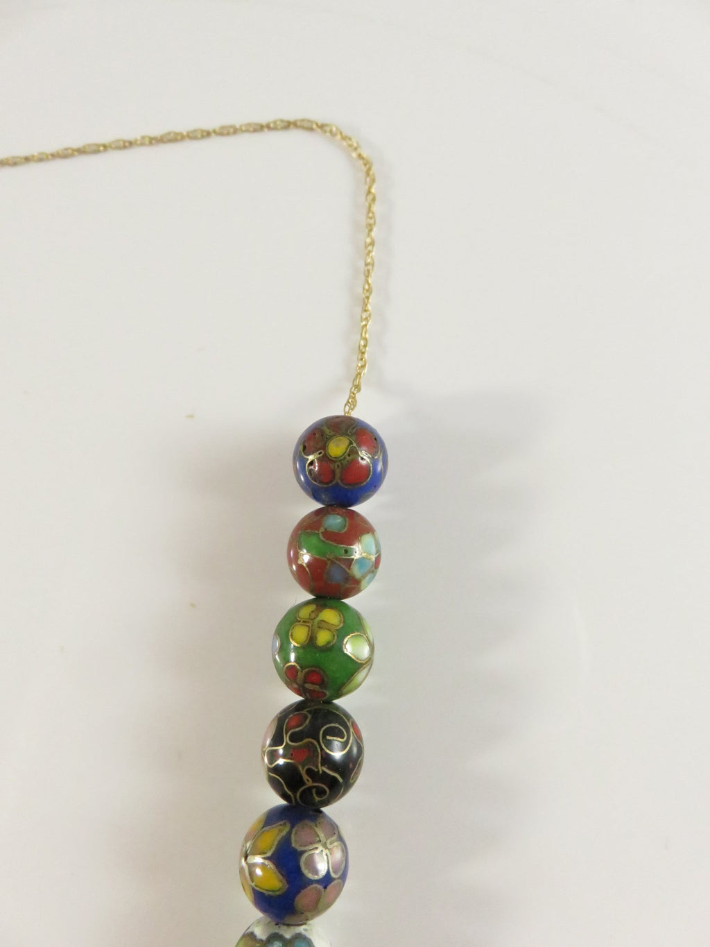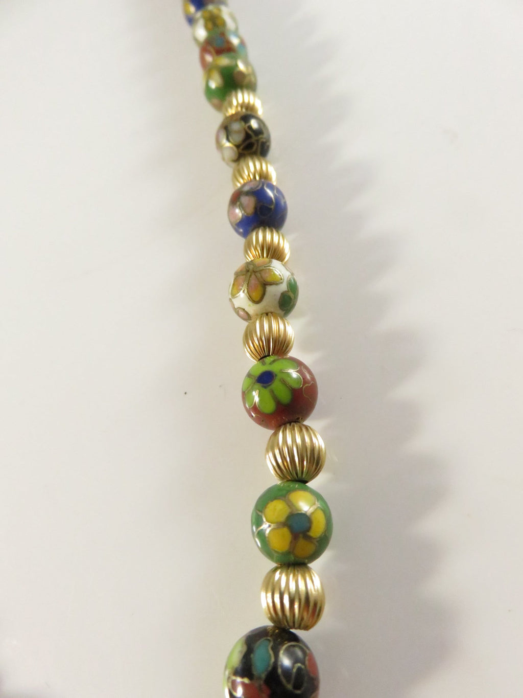 14K Gold Rope Chain Necklace with Multi‑Color Cloisonné Floral Beads, Slide Lock Clasp