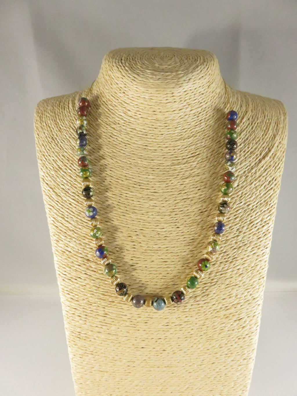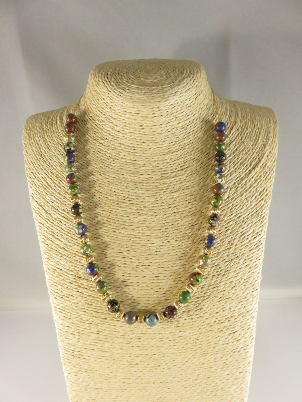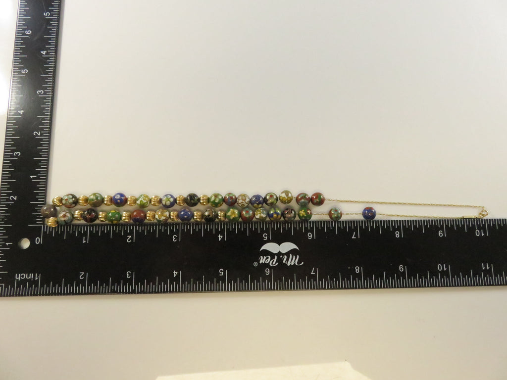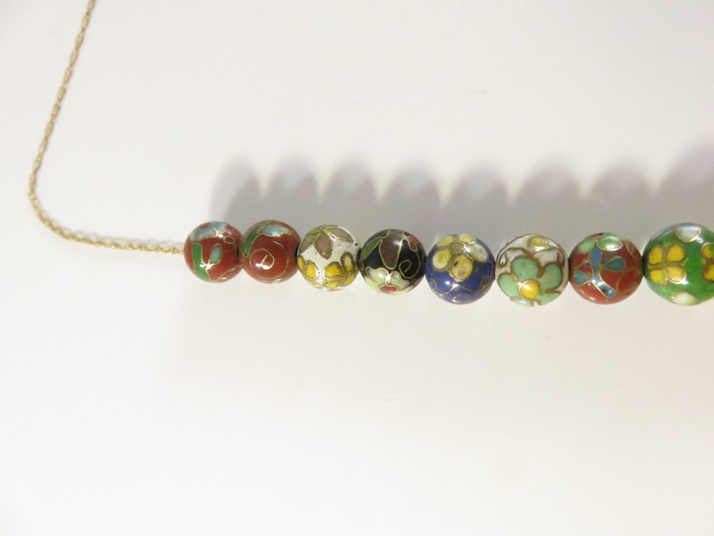 14K Gold Rope Chain Necklace with Multi‑Color Cloisonné Floral Beads, Slide Lock Clasp