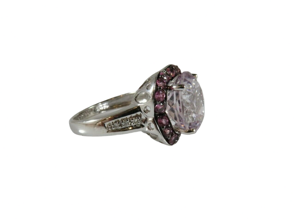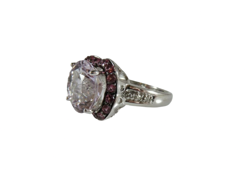 14K White Gold ATR Rose Quartz Ring w/ Tourmalines & Diamonds Size 7