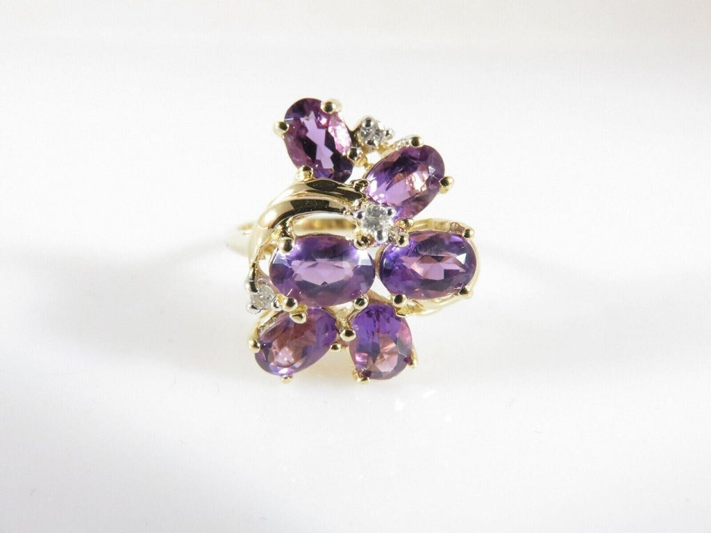 Designer Amethyst & Diamond Accented Cocktail Ring in 14K Yellow Gold Size 6.75