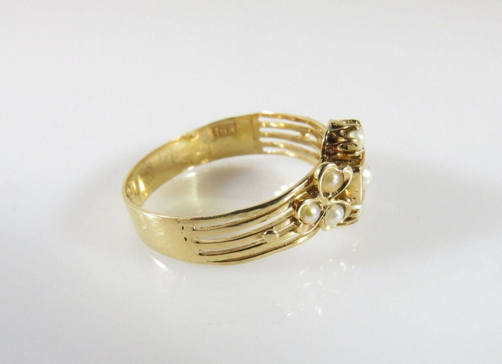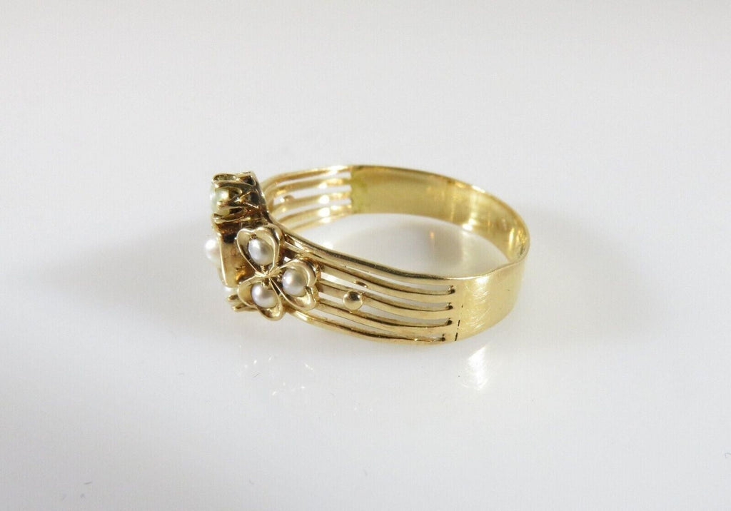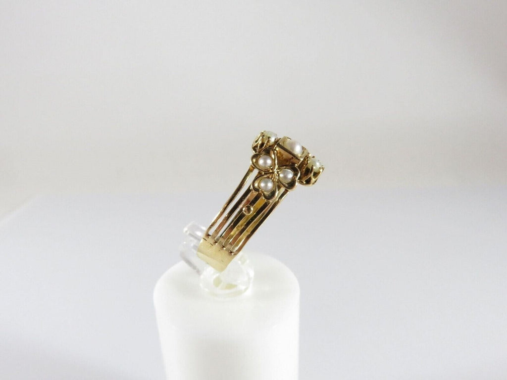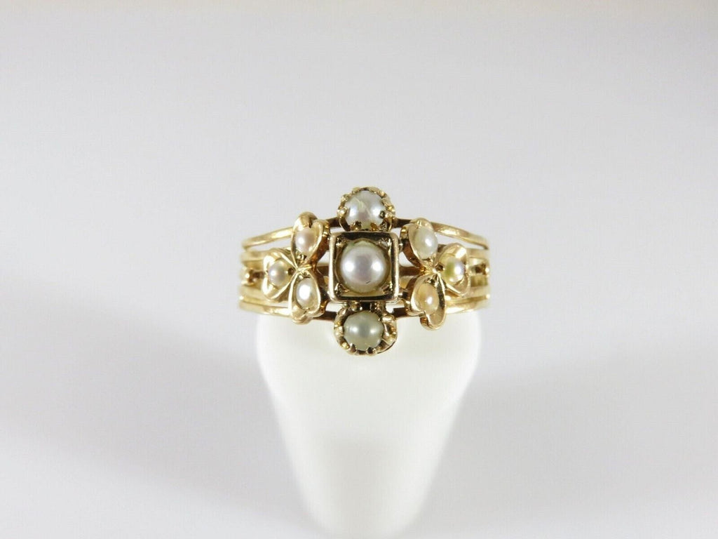 Early Victorian 18K Gold 3 Leaf Clover Pearl Statement Ring Size 8