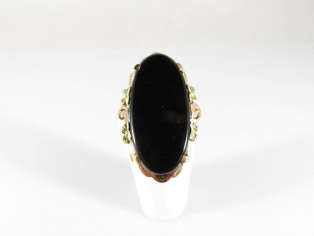 Bold Victorian Style Oval Onyx Rosy Yellow Gold Accented Cocktail Ring Flower Si