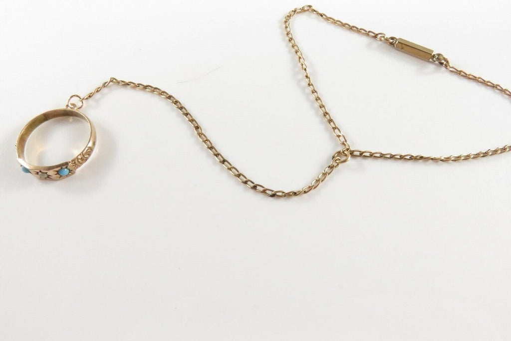 Rare c1900 Children's Slave Ring 4 1/2" Bracelet Sz 1/2 Ring Pearl Turquoise Sto