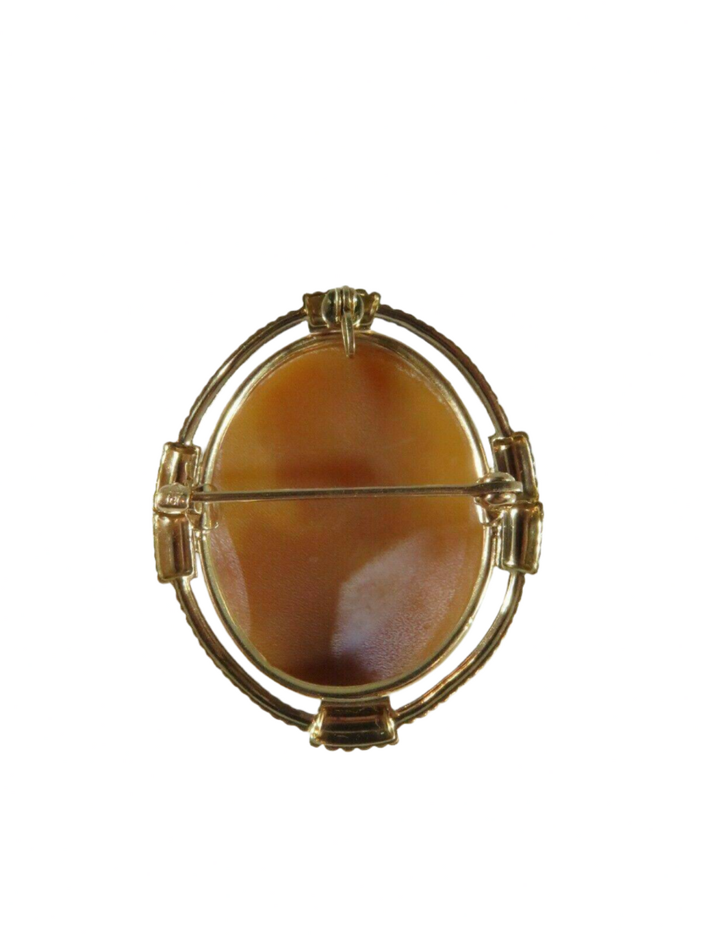 10K Gold Art Nouveau Right-Facing Floral Shell Cameo Brooch Pendant, 41.8 × 35.5 mm