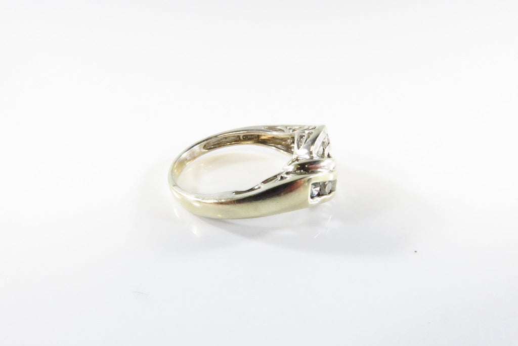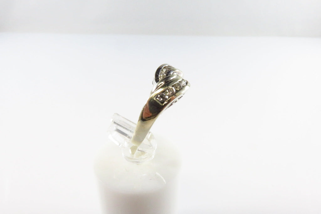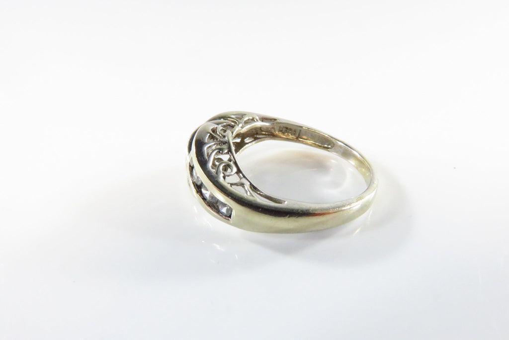 14K White Gold MEDA Crossover Ring with 12 Channel Set Cubic Zirconia Sz 4.2