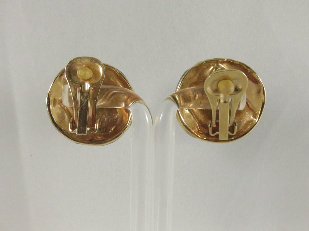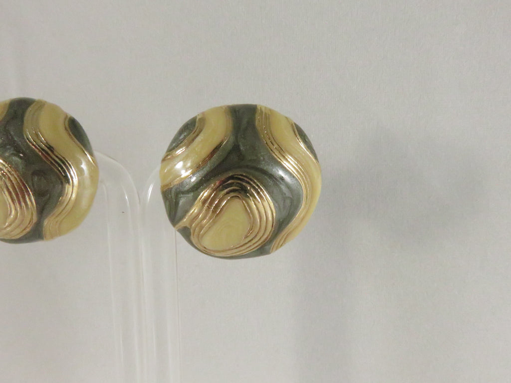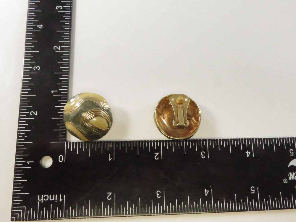1980s Glitter Round Clips, Gray Cream Enamel Earrings, Unusual Design, 1.12", Gold Tone