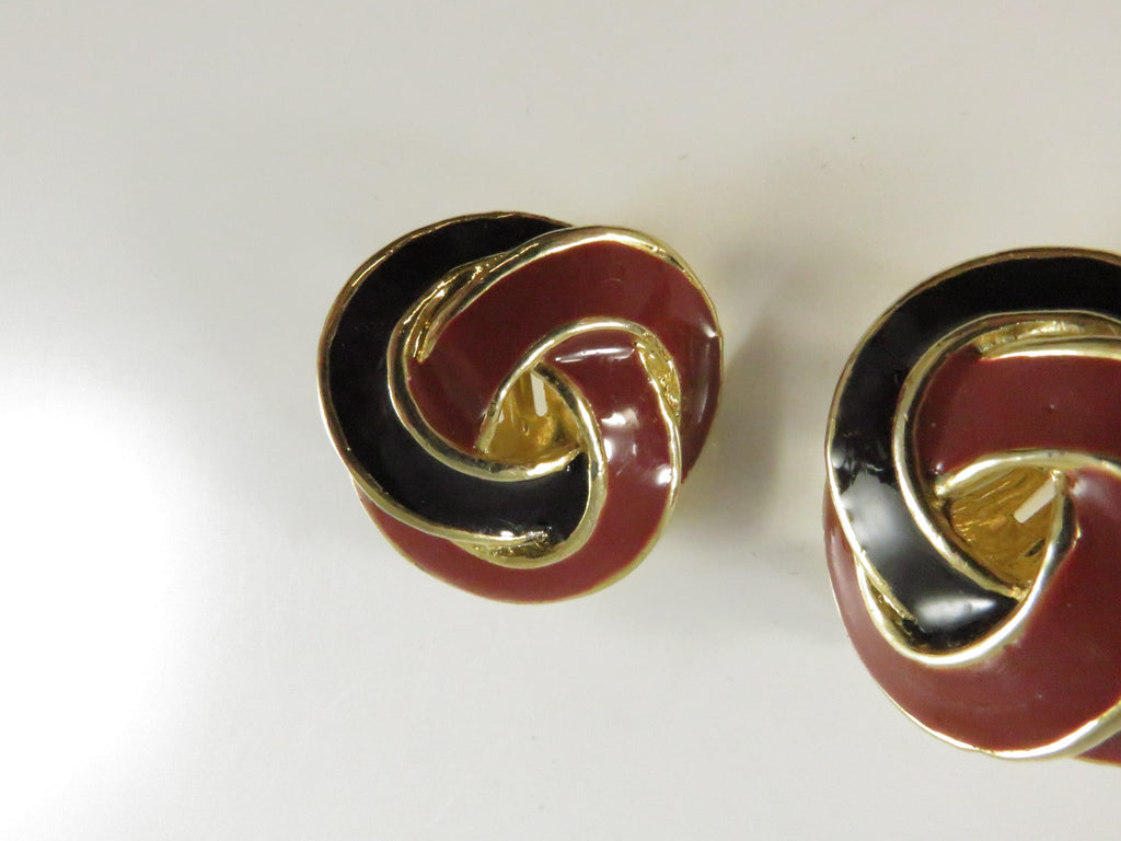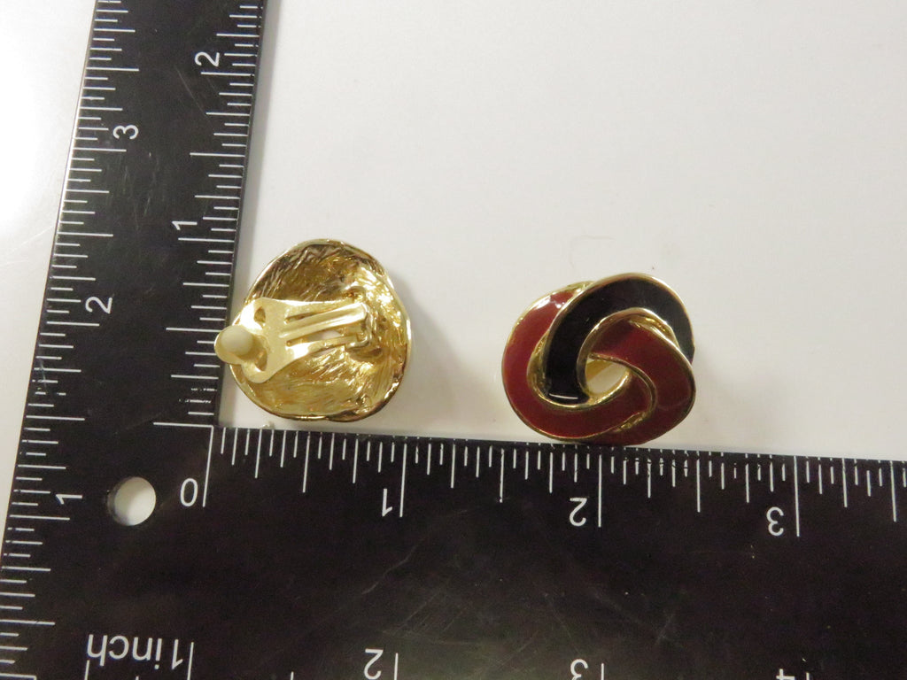 1980s Woven Ribbon Clips, Red Black Enamel Earrings, Chunky Interlocking, 1"
