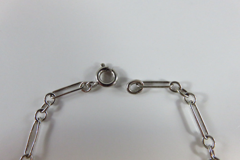 7 1/4" Sterling Silver Long Short Link Bracelet Spring Ring Closure