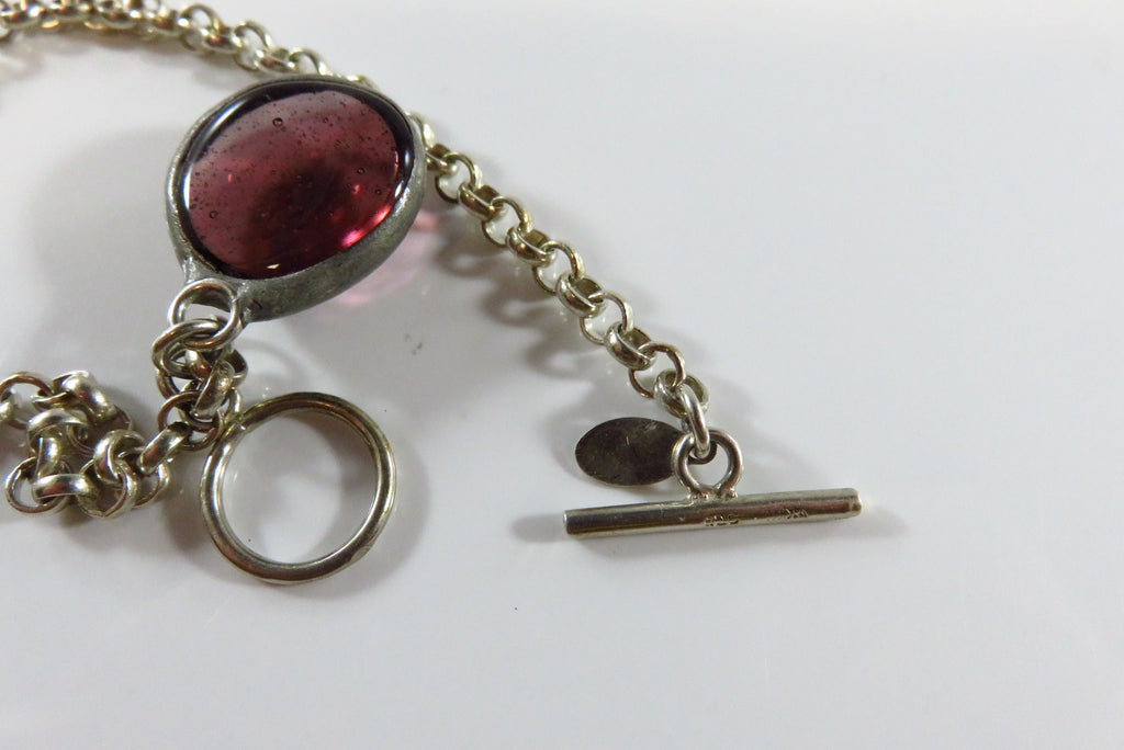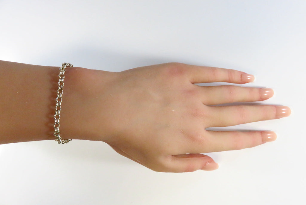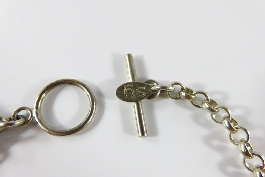 8" Sterling Silver SG Toggle Link Bracelet Rolo Link Charm Bracelet