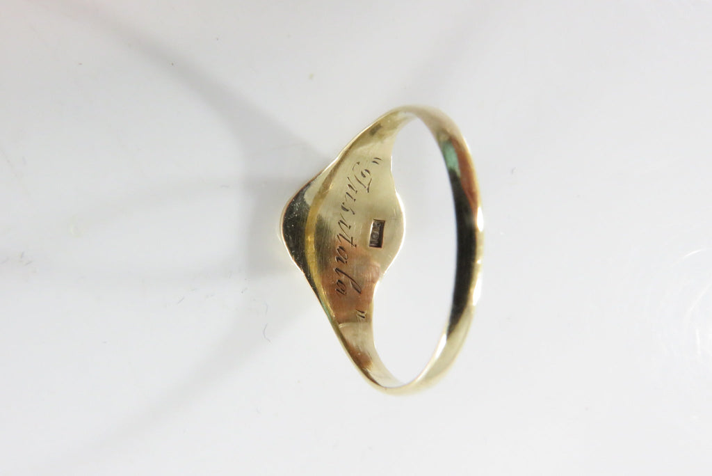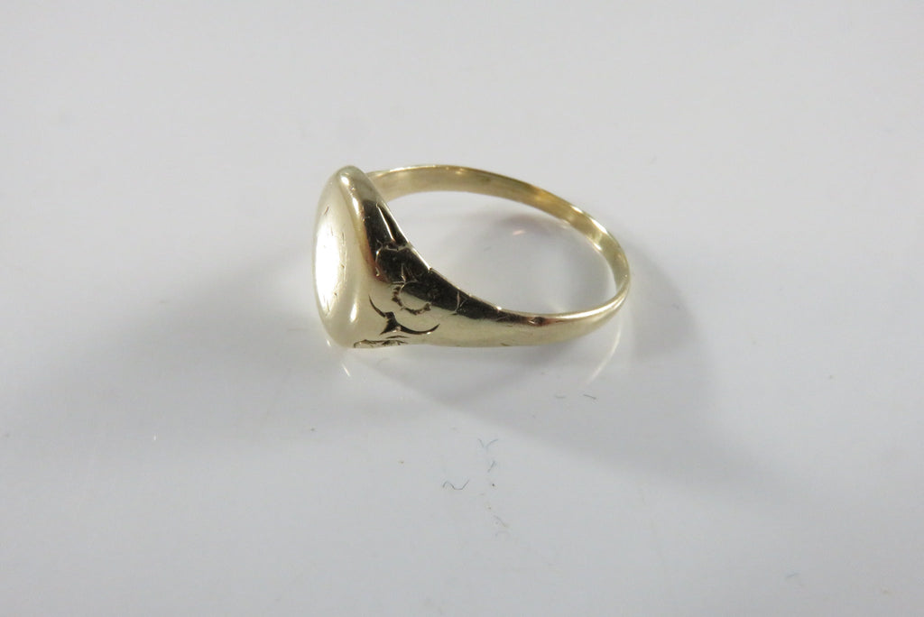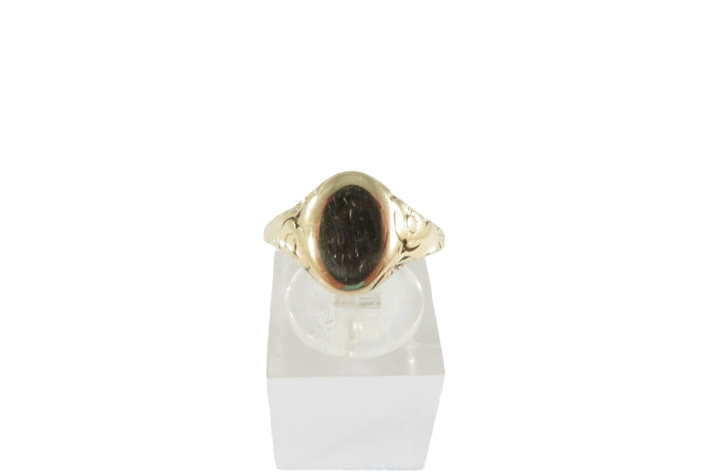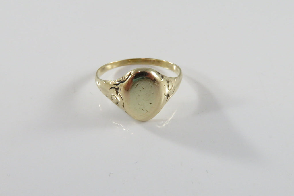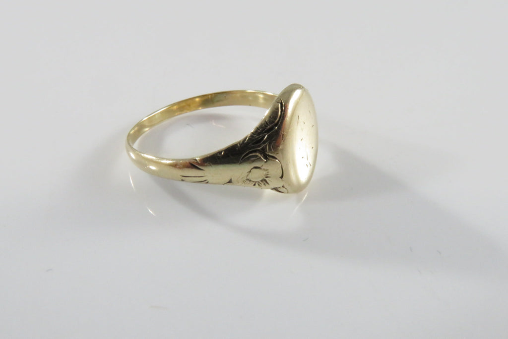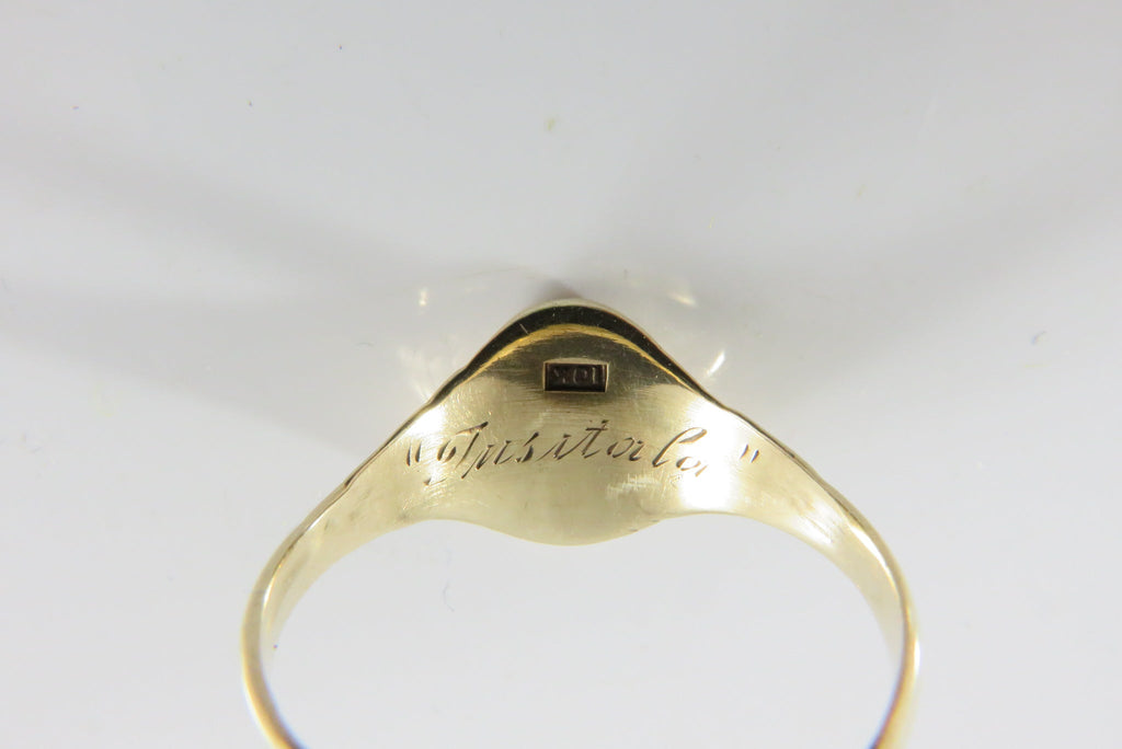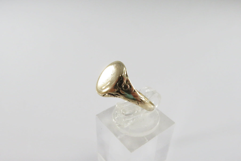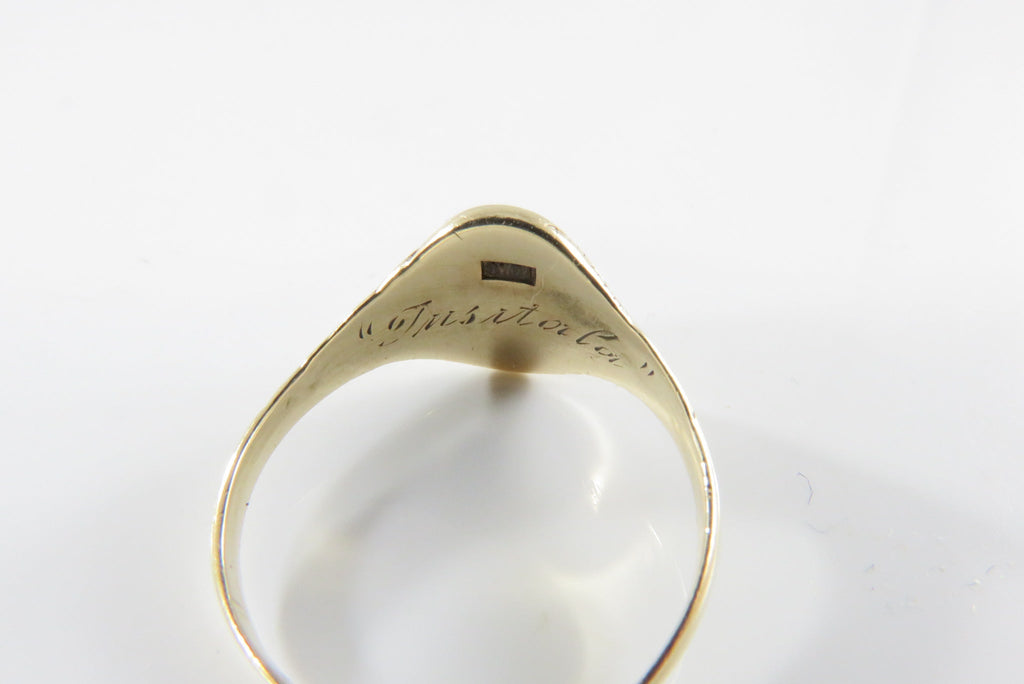 Antique 10K Signet Ring Edwardian Leaf Themed "Writer of Stories" Size 5.75 Women