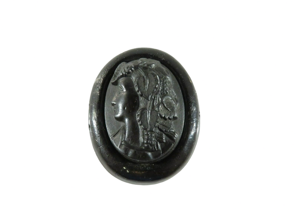 Antique Victorian Mourning Cameo Choker with Wood Frame