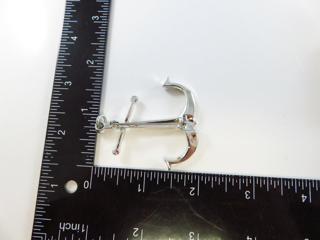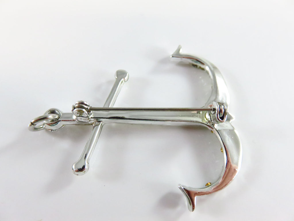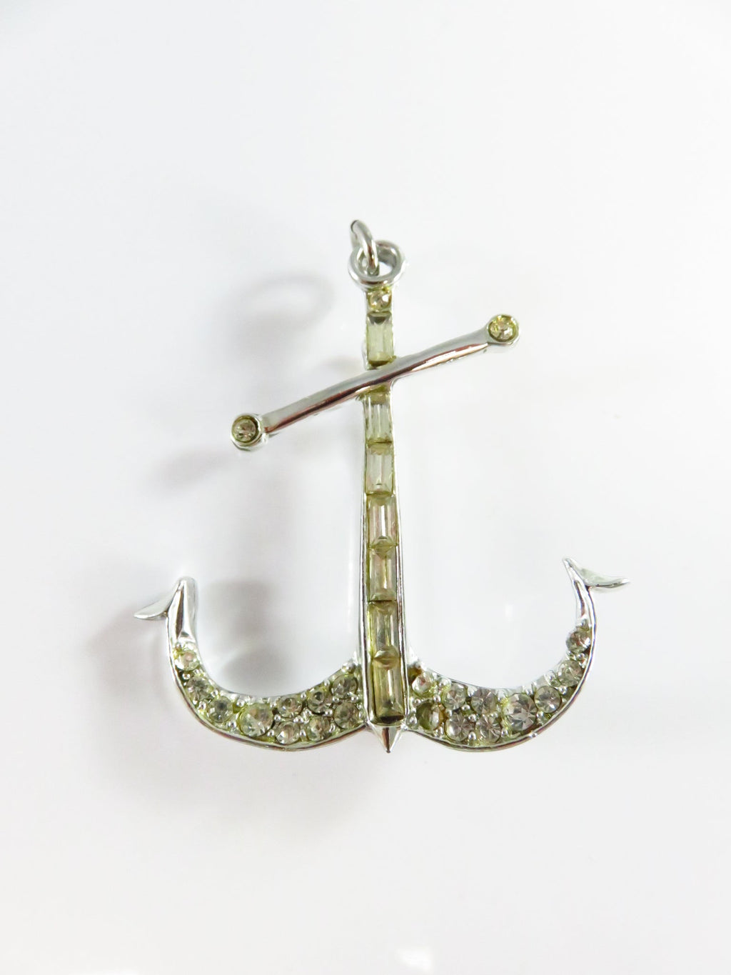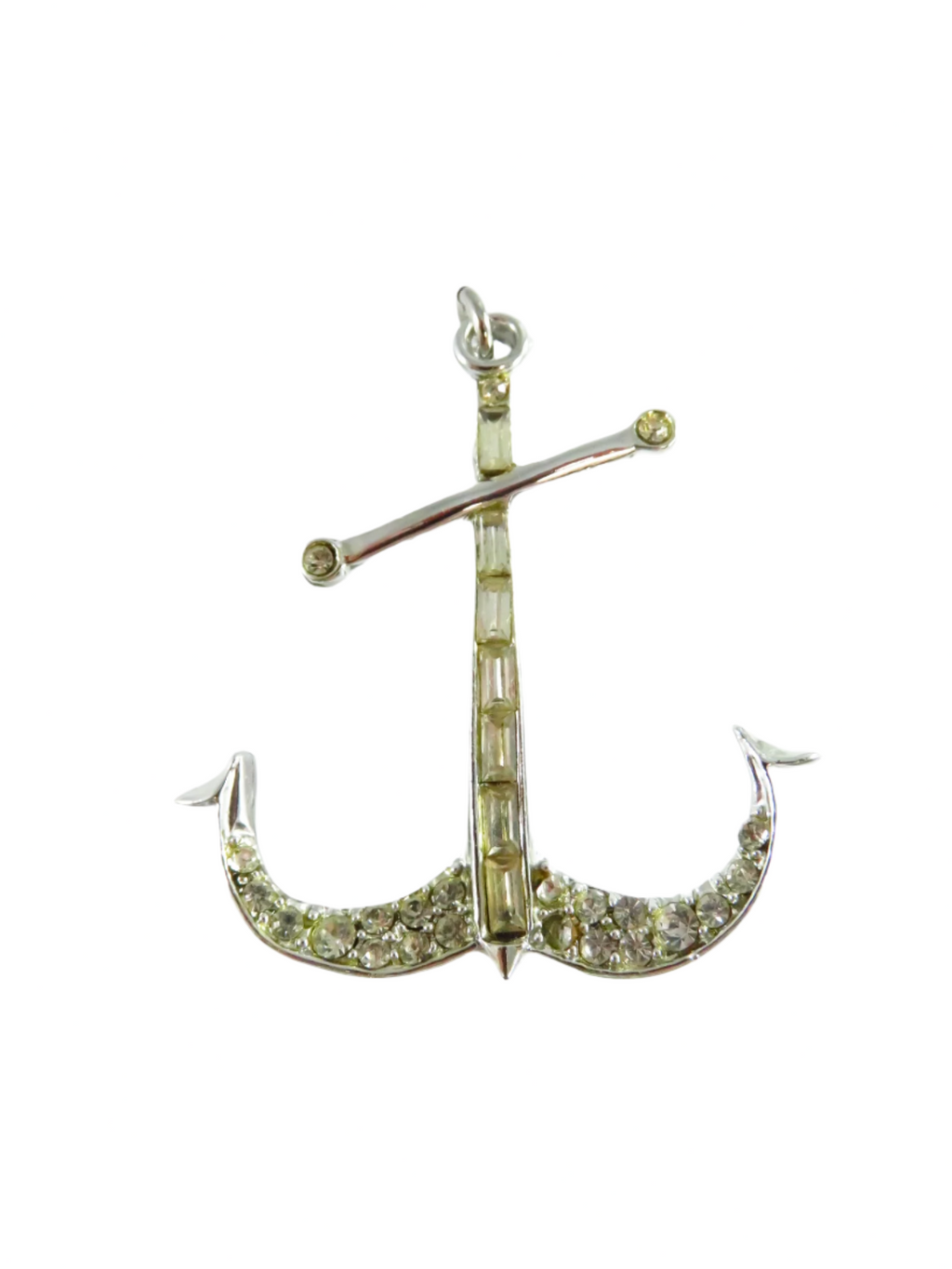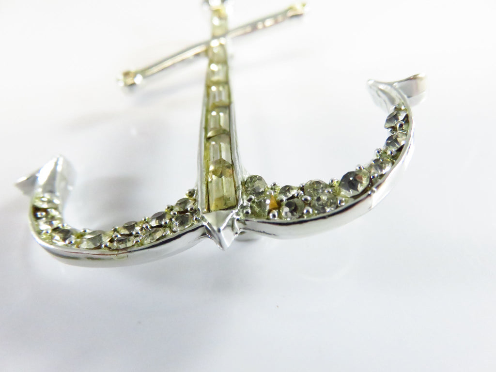 c1940 Rhinestone Anchor Brooch Pendant Emerald & Round Cut in Gift Box