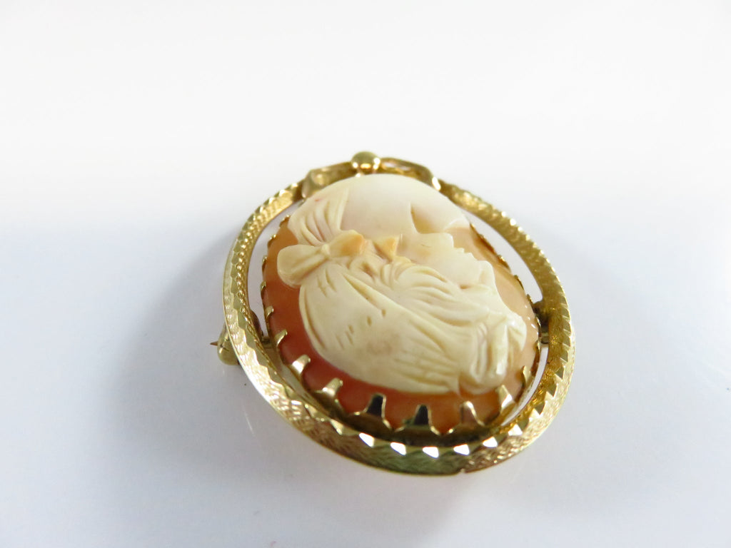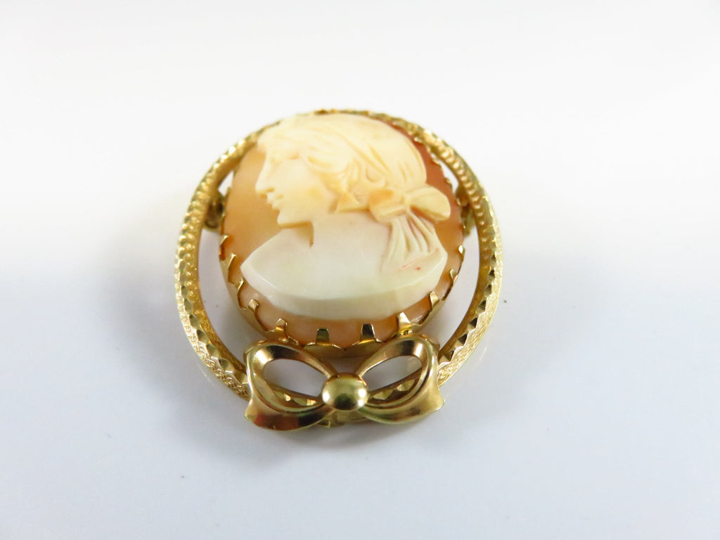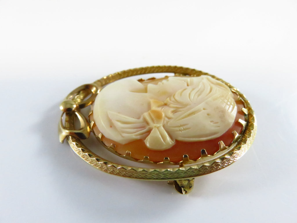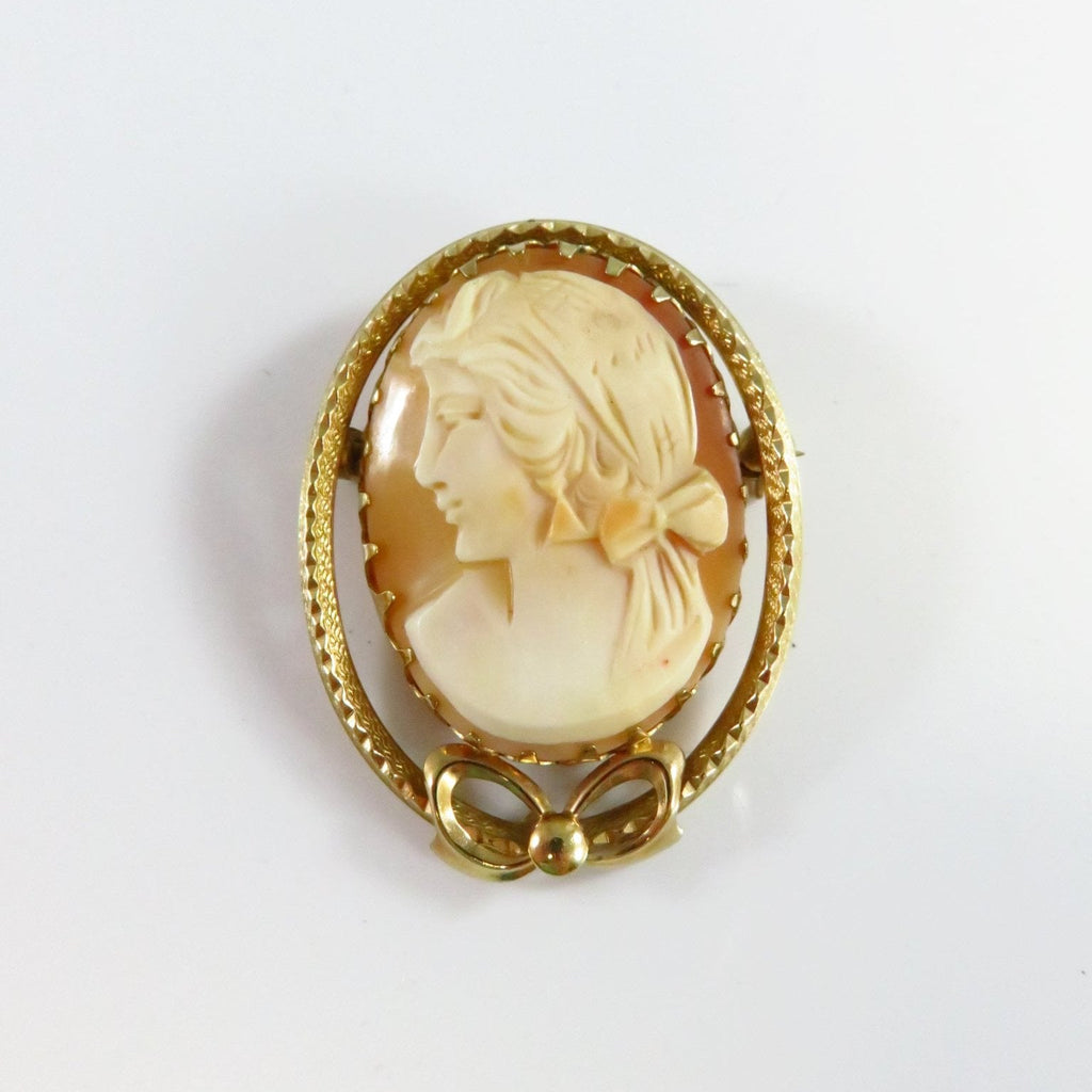 Carved Shell Cameo Brooch Left Facing 1/20 14K Gold Filled Bow Brooch