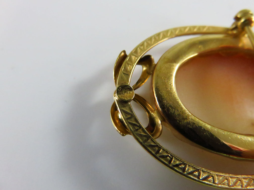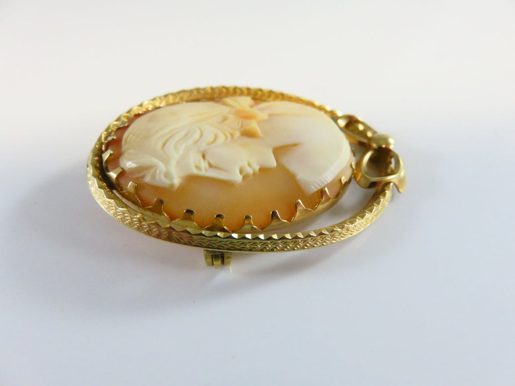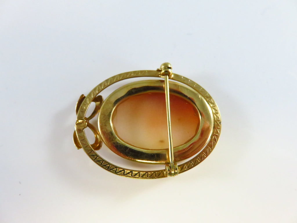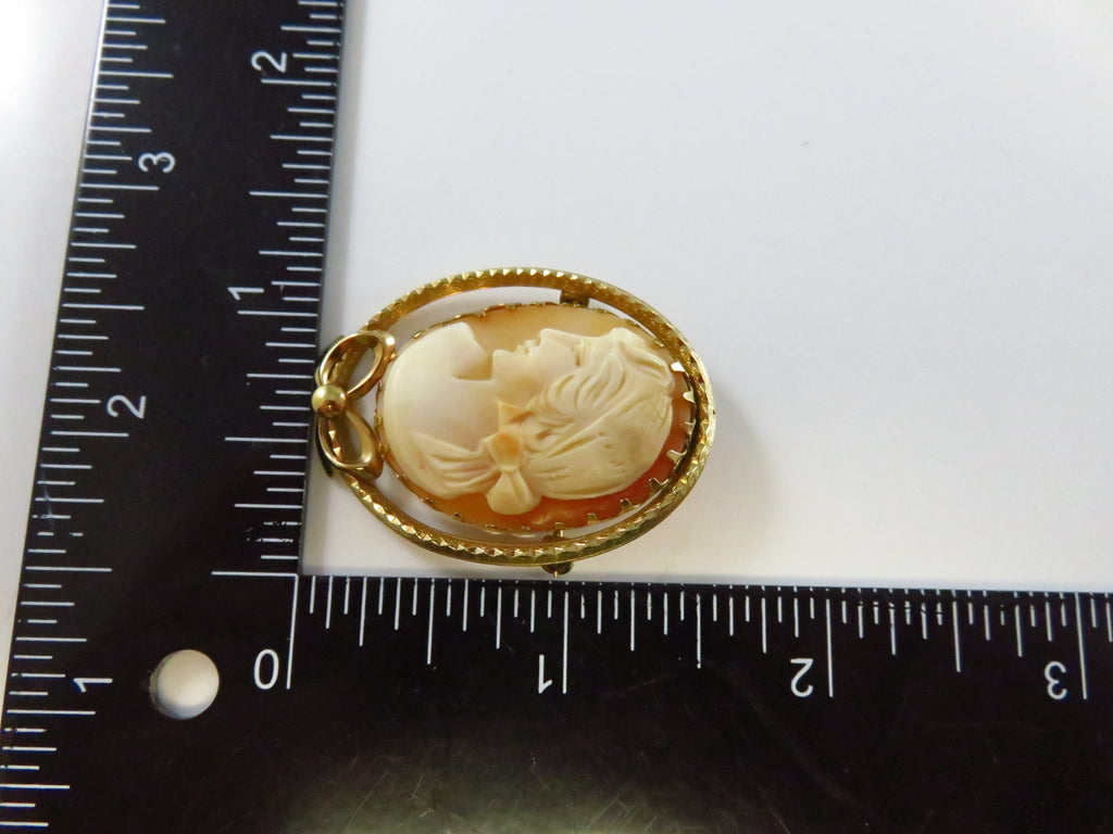 Carved Shell Cameo Brooch Left Facing 1/20 14K Gold Filled Bow Brooch