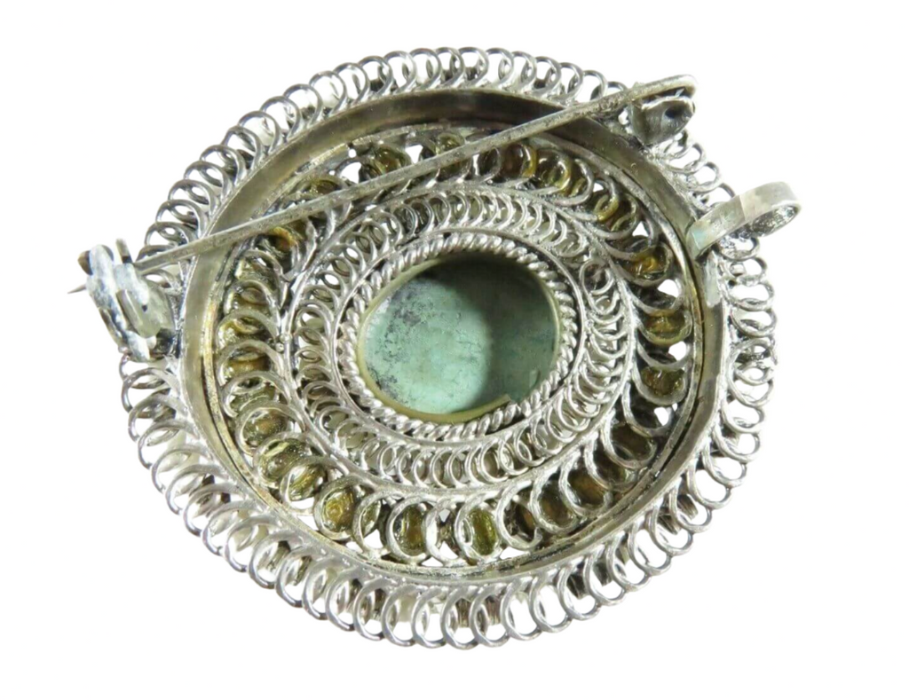 Costume Brooch Pendant Rose Cut Paste, Hardstone, Pearl Surround Fancy Filigree