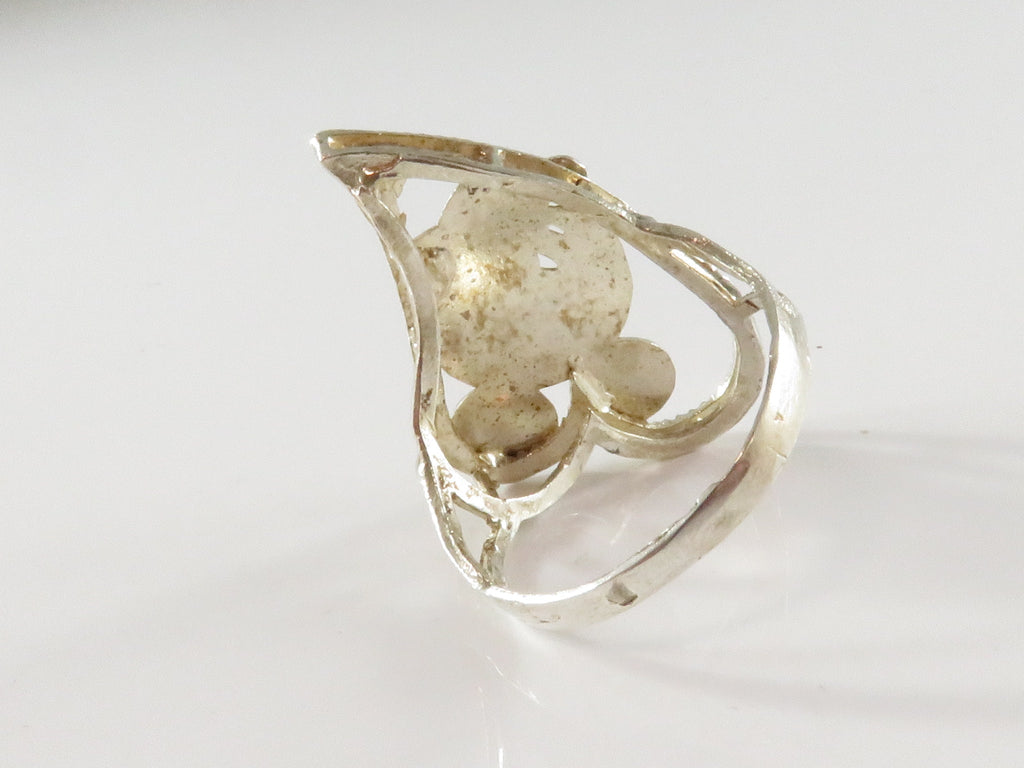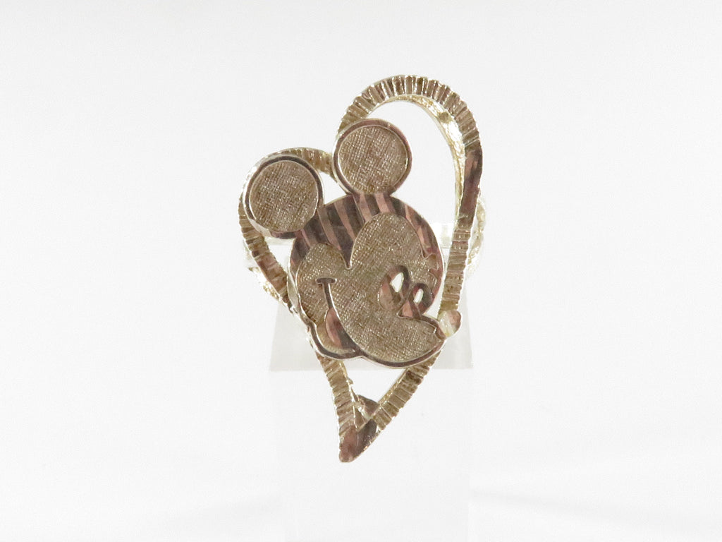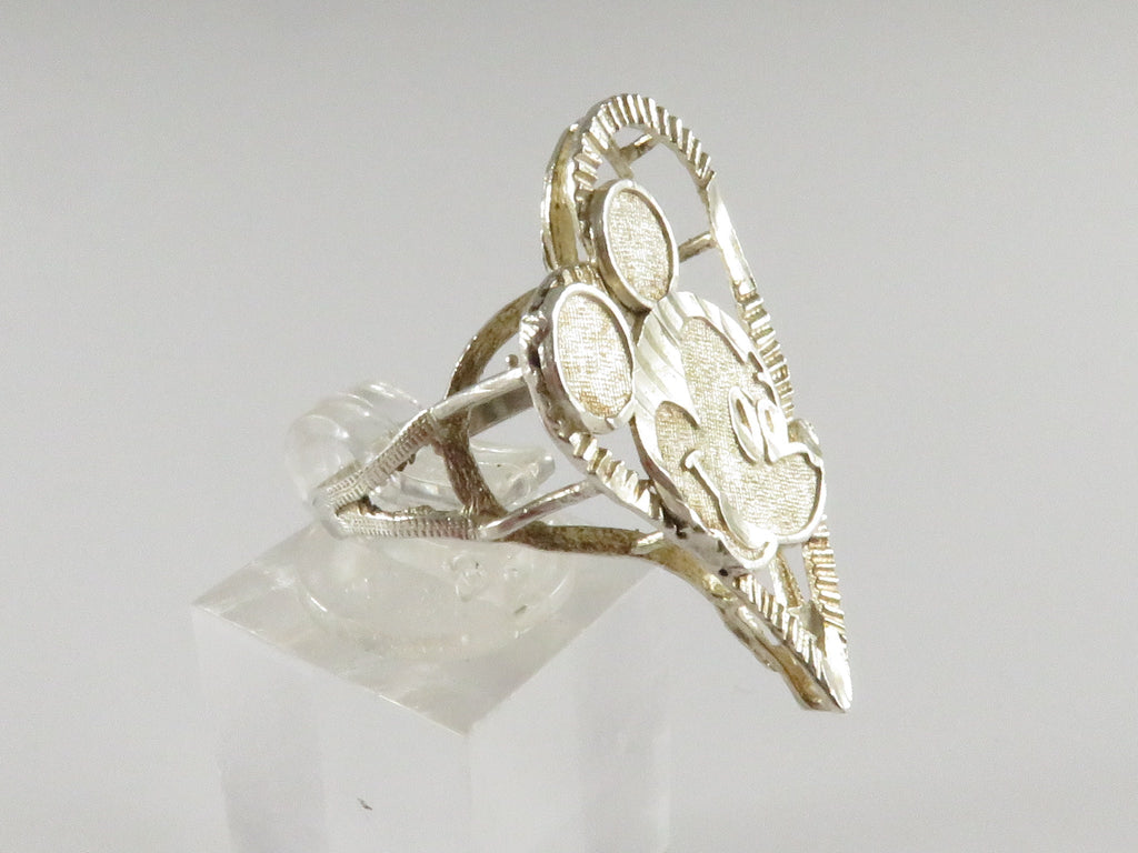 Cute Sterling Large Mickey Mouse Heart Finger Ring Etched Designed Size 9.5