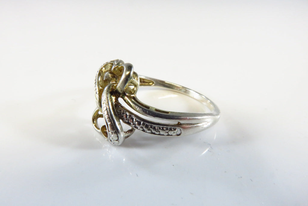 Double Heart Infinity Loop Costume Ring By JCM White Metal Size 7 3/4