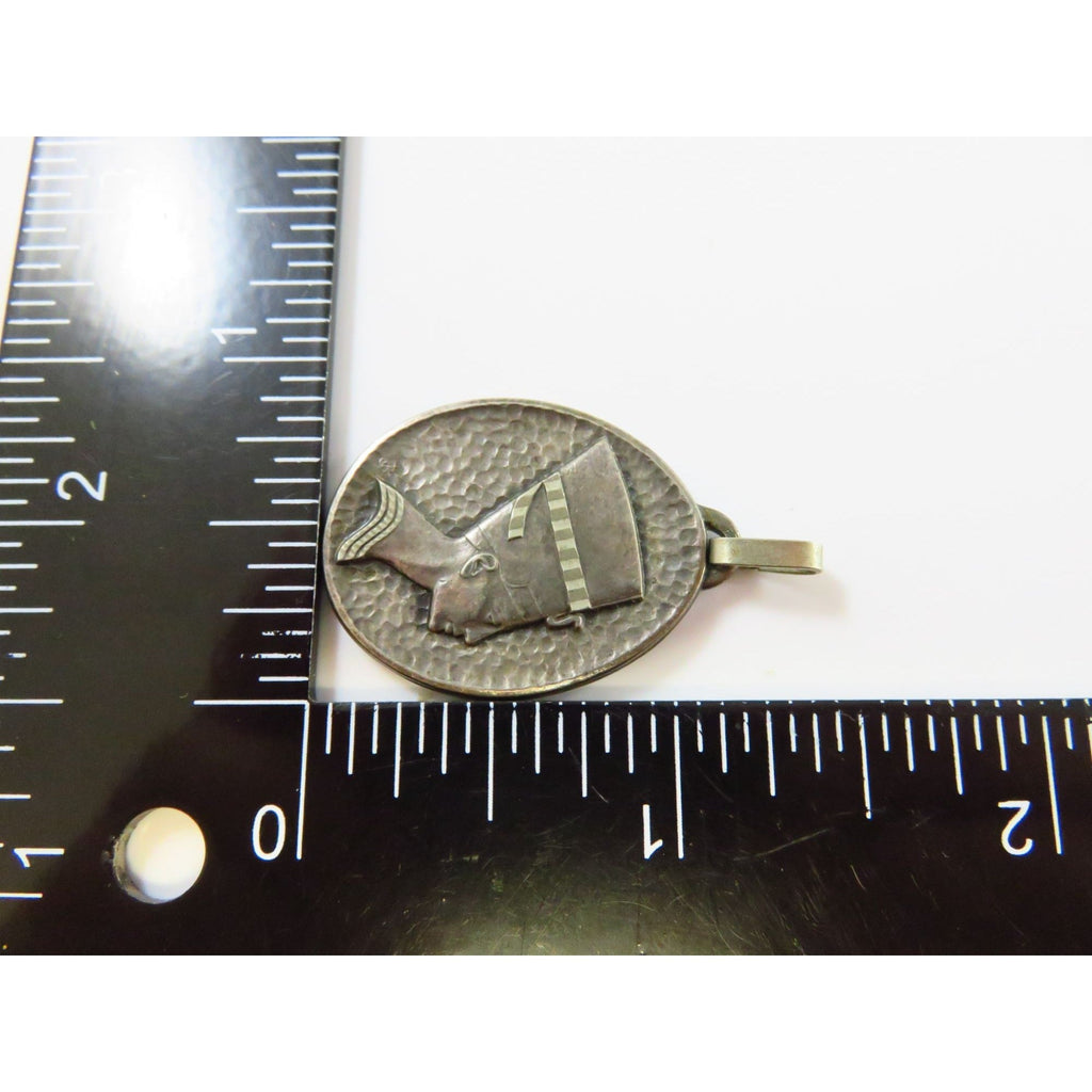 Egyptian Queen Nefertiti Oval Medallion Pendant Charm Silver Tone Metal
