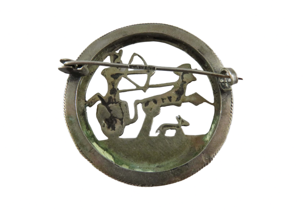 Egyptian Revival Ancient Chariot Dog Scene Art Deco Pierced 800 Silver Pin