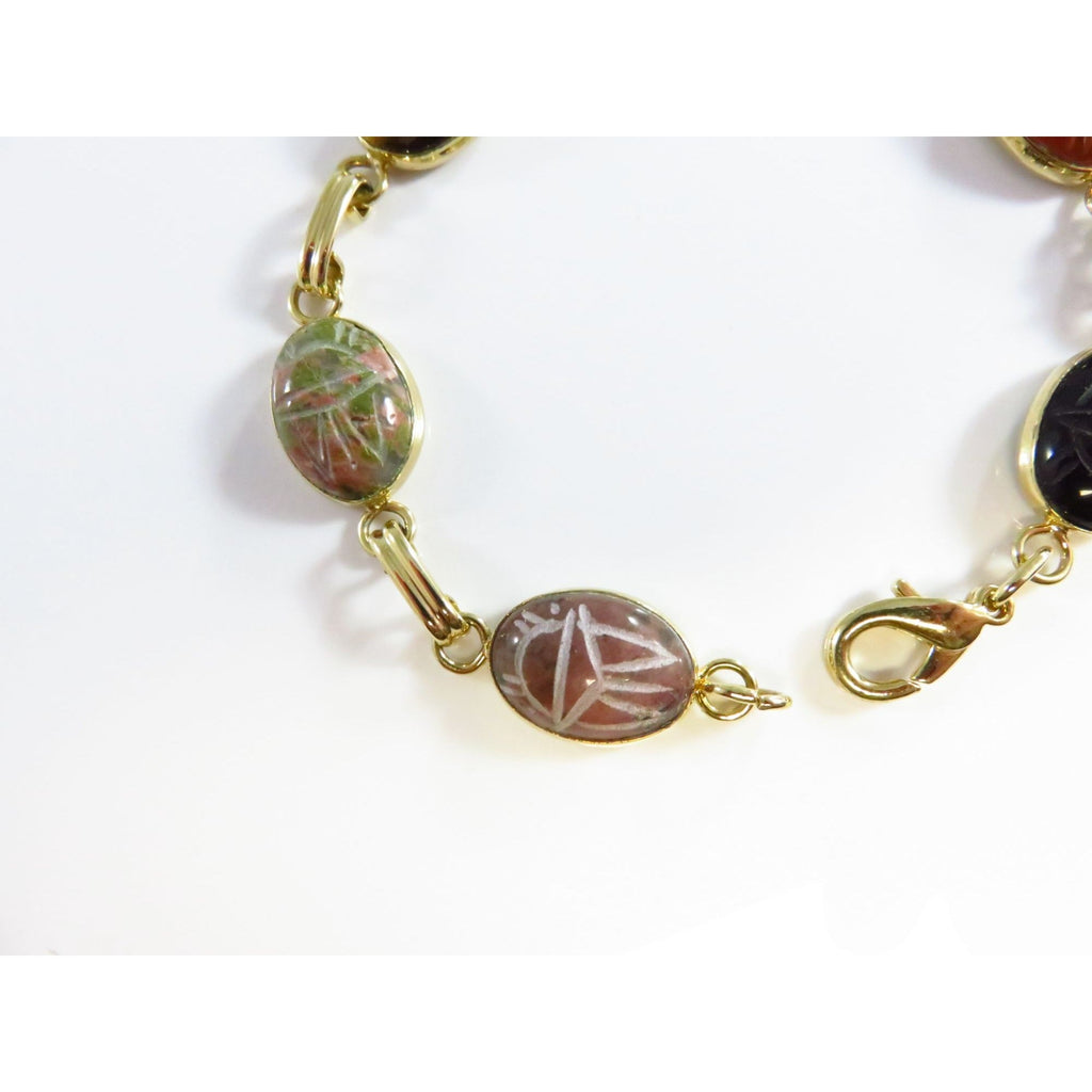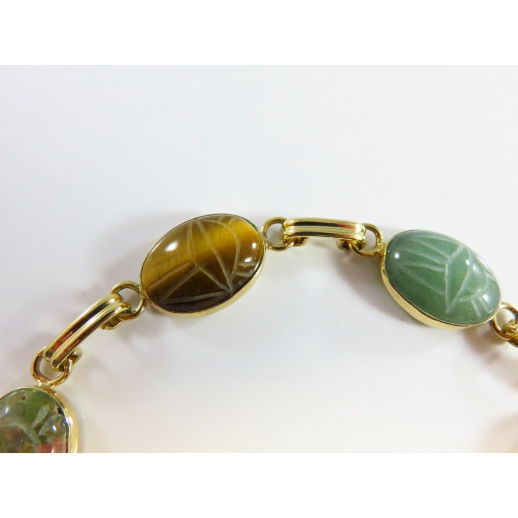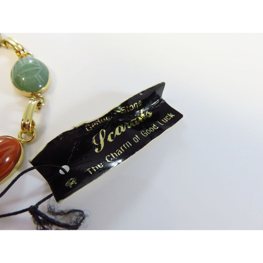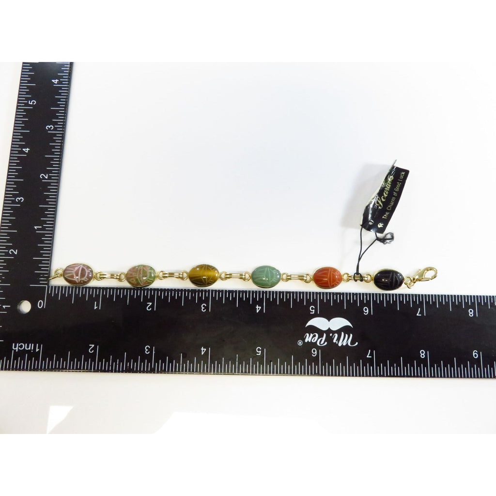 Genuine Scarab Stones Gold Tone Bracelet With Lobster Clasp 7 1/4" Long