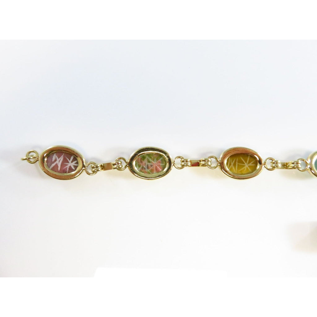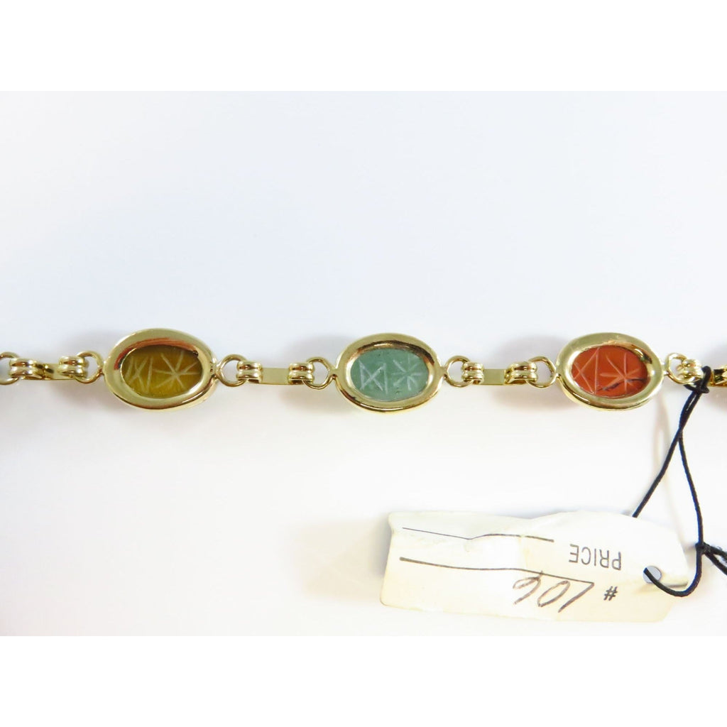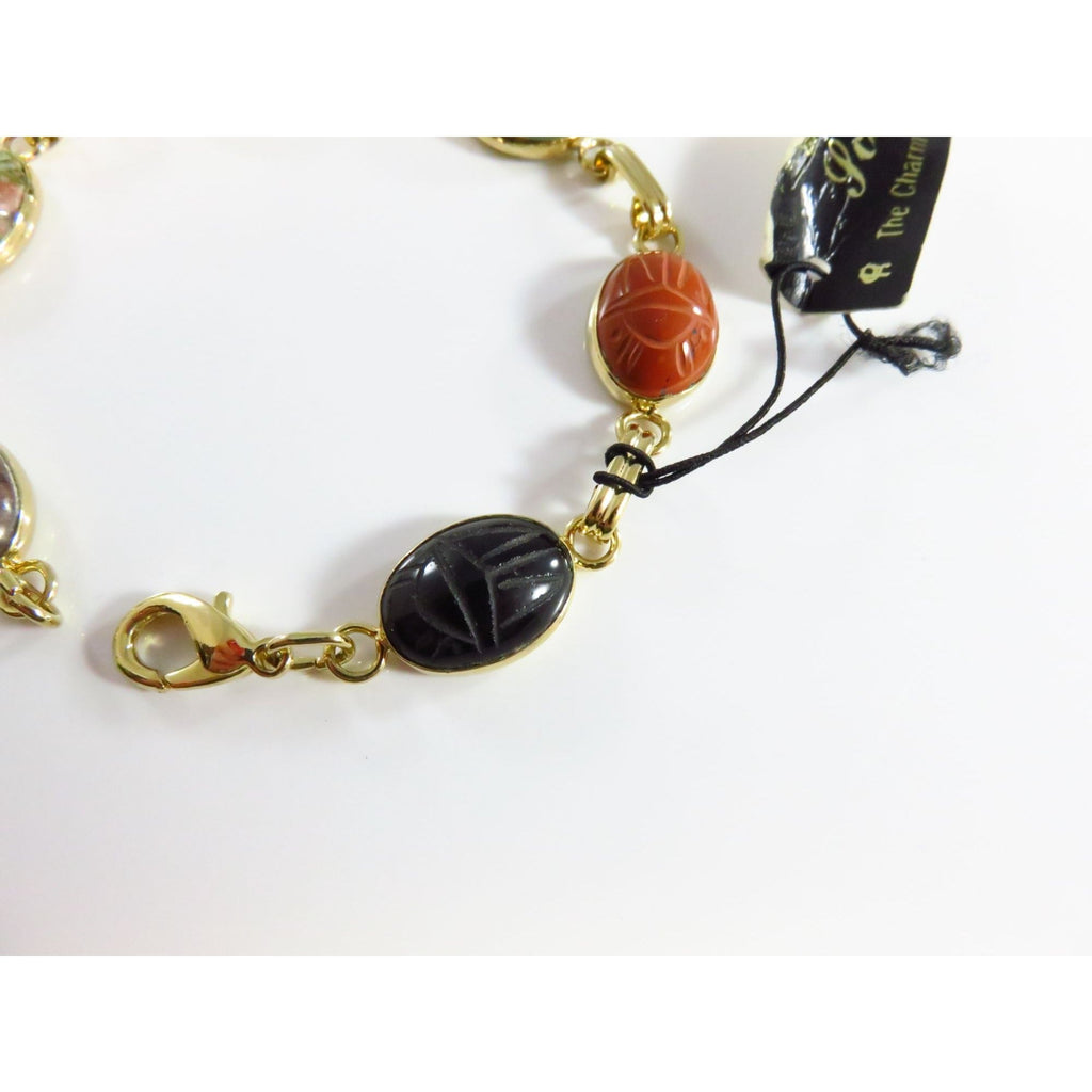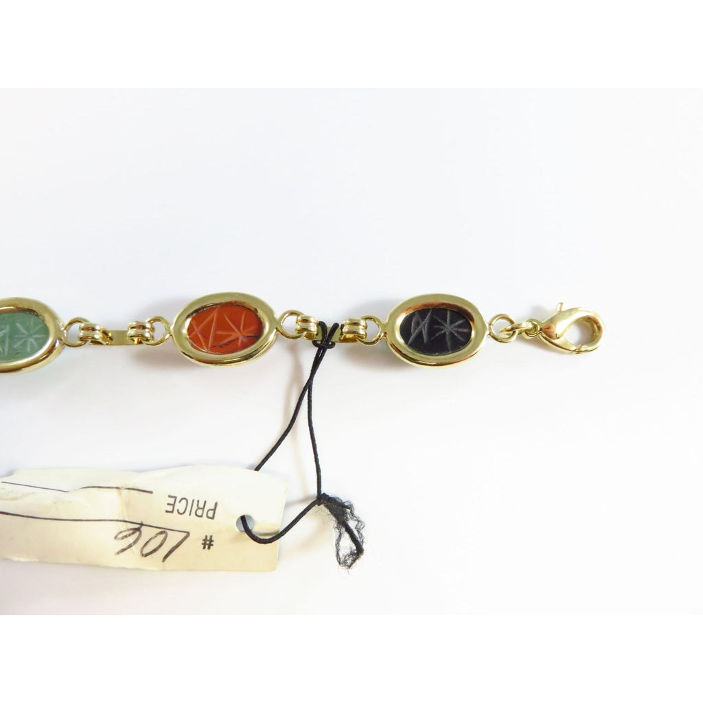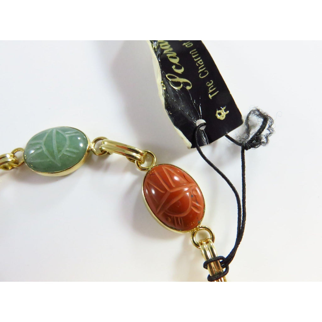 Genuine Scarab Stones Gold Tone Bracelet With Lobster Clasp 7 1/4" Long