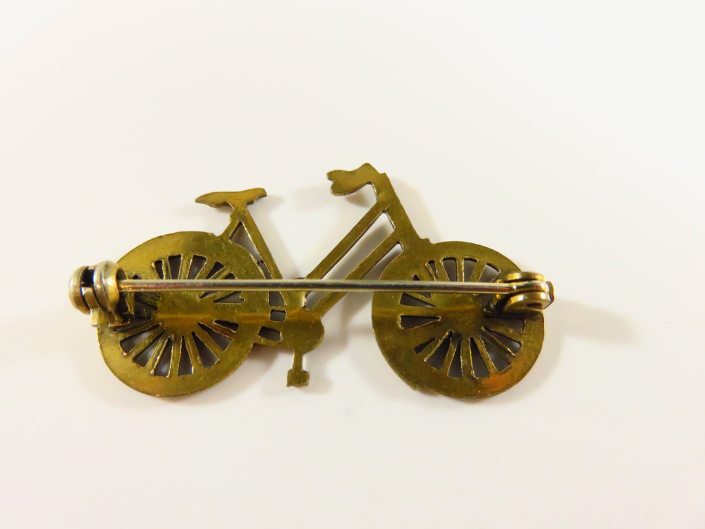 Gold Gilt Bicycle Brooch Antiqued Tone 1 1/2" Wide