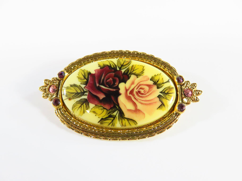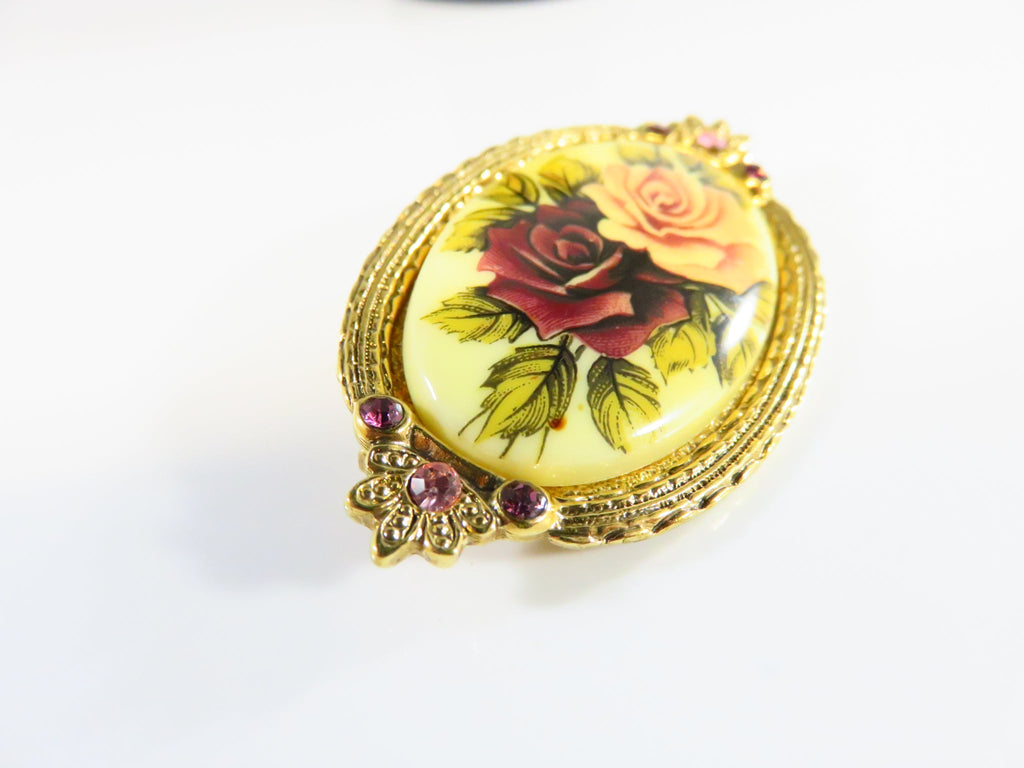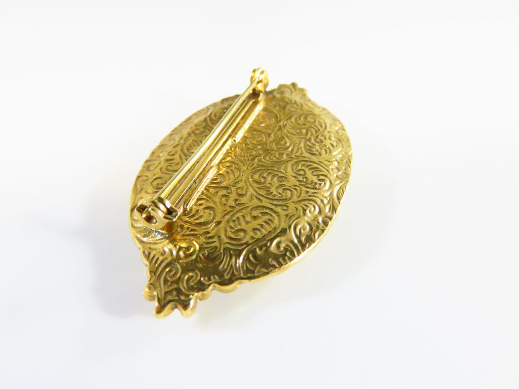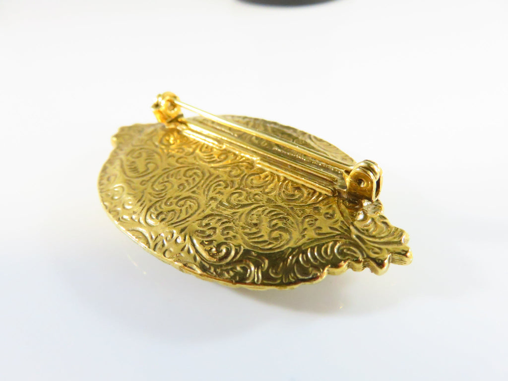 Gold Gilt Flower Brooch with Faux Stones 2 1/8" Wide