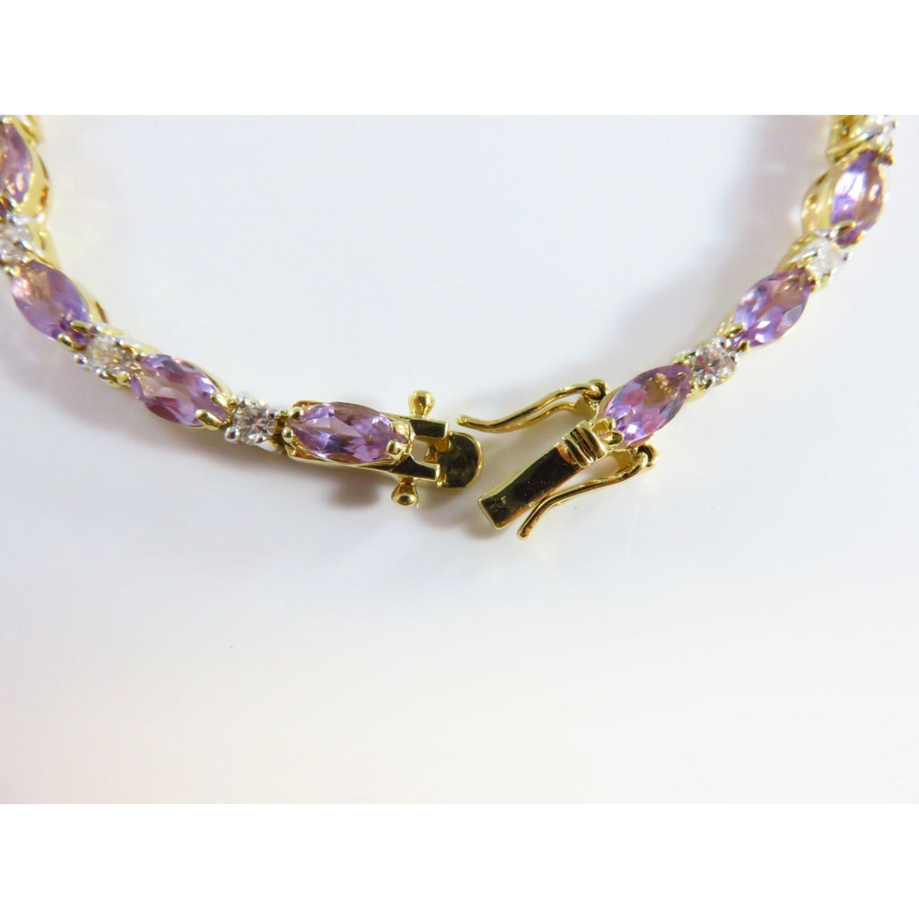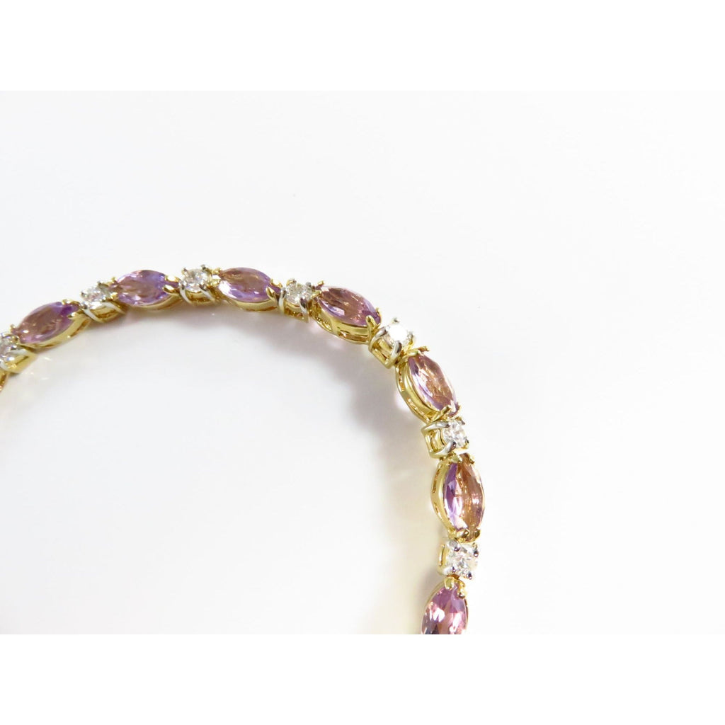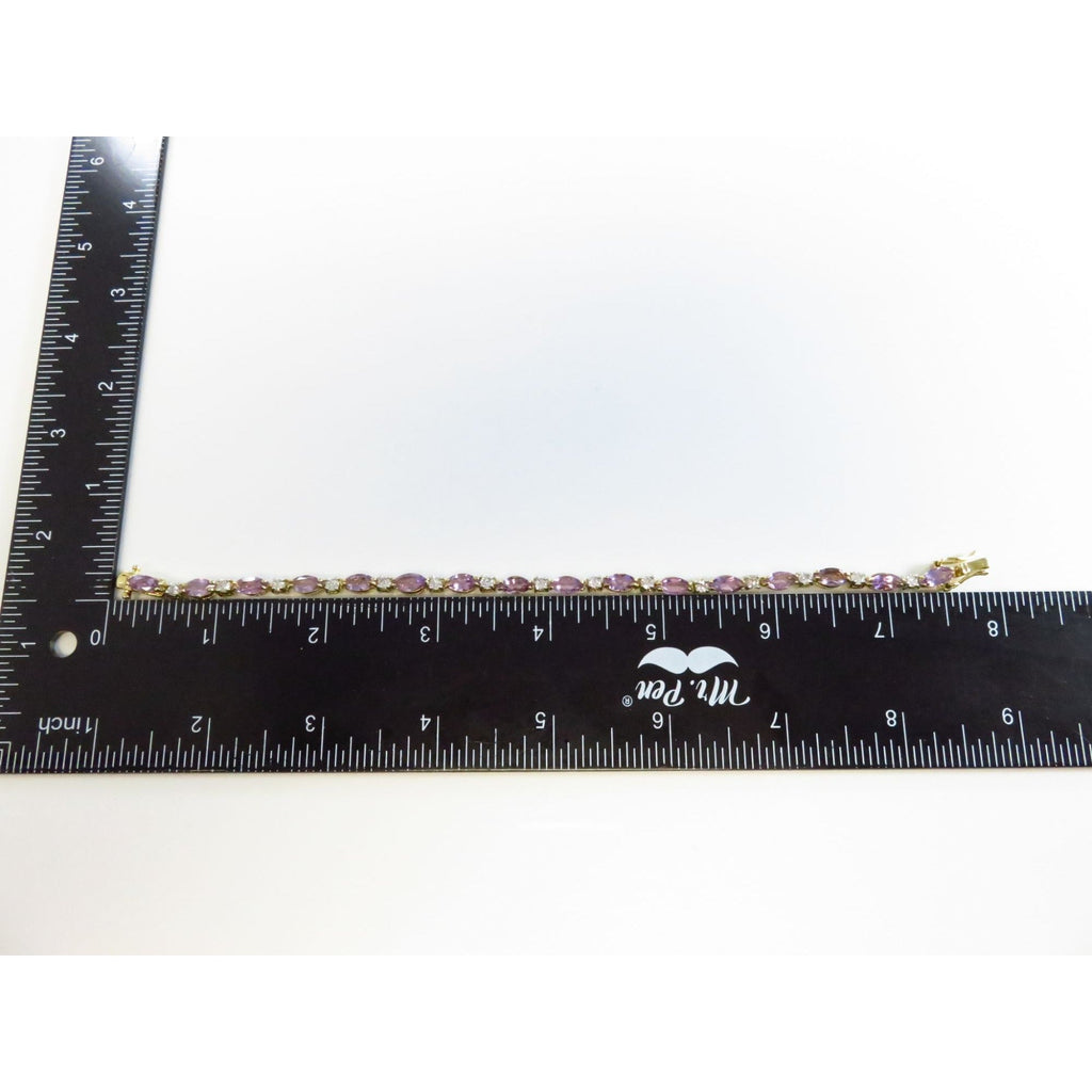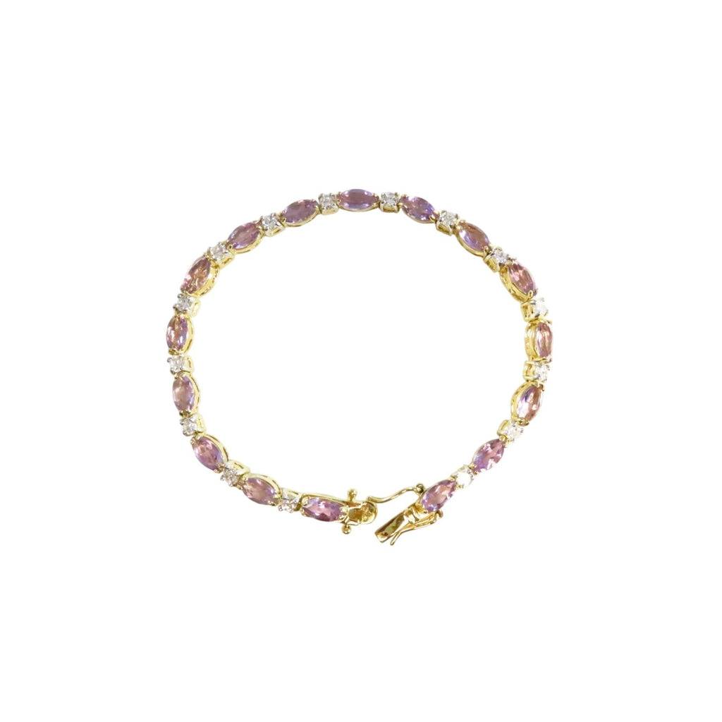 Gold Tone Bracelet W/ Pink Marquise & Clear Glass Stones 7.5"