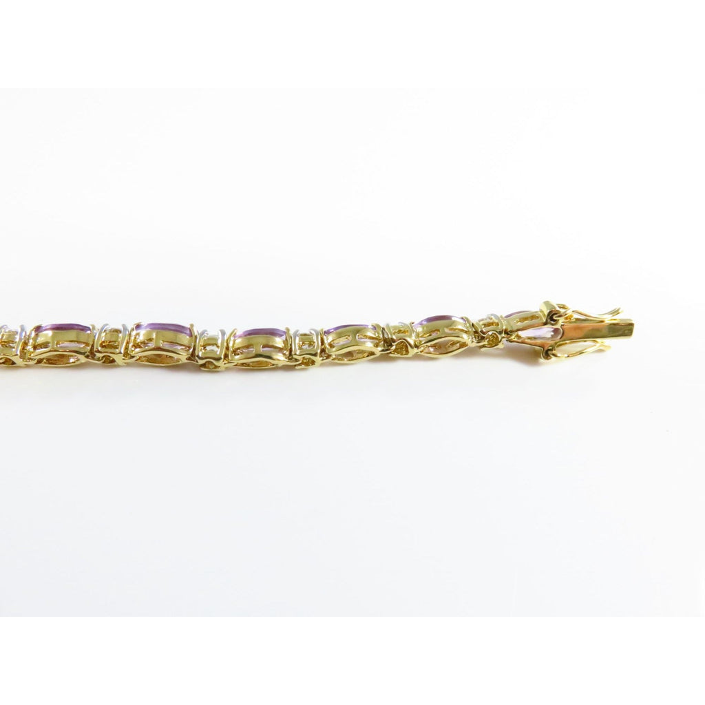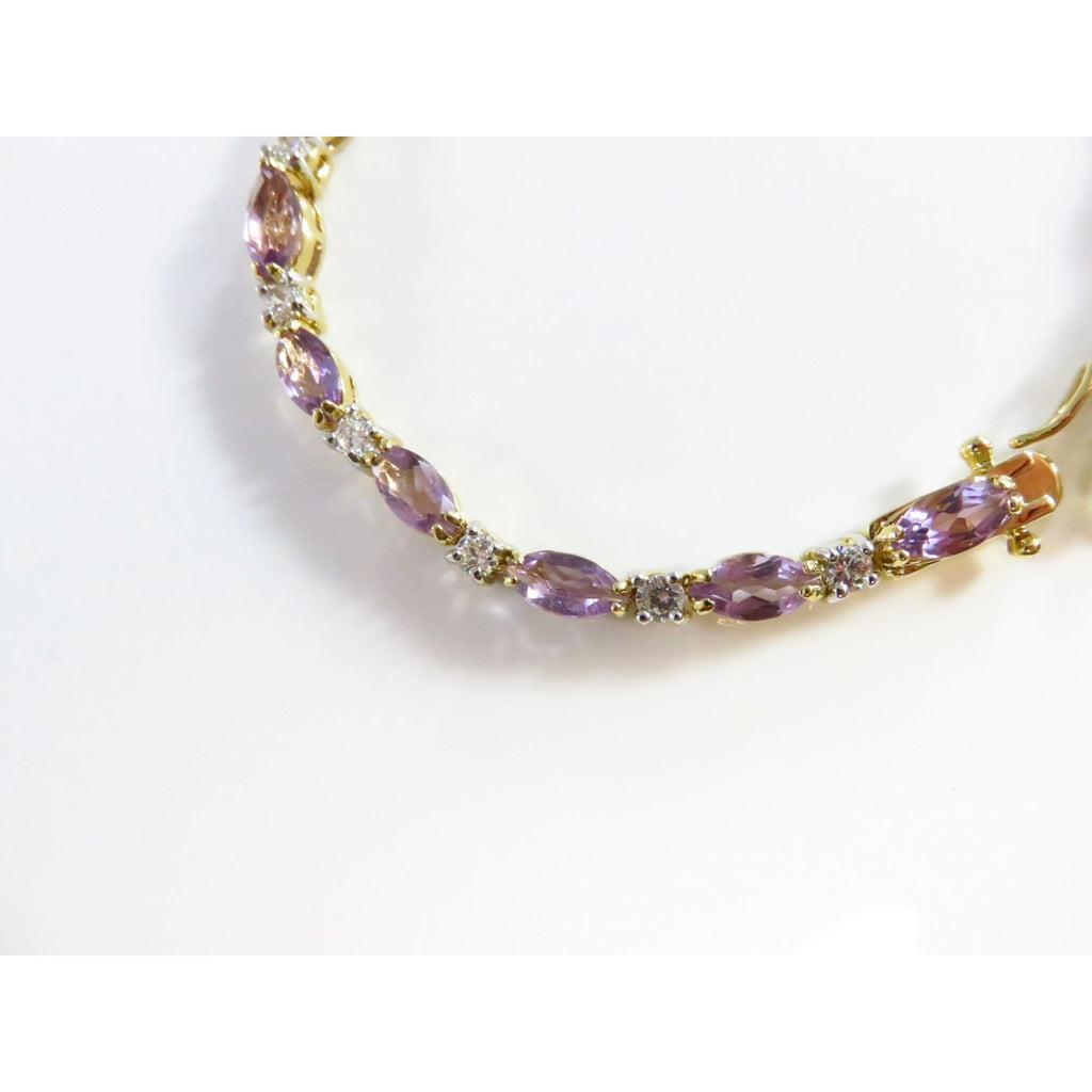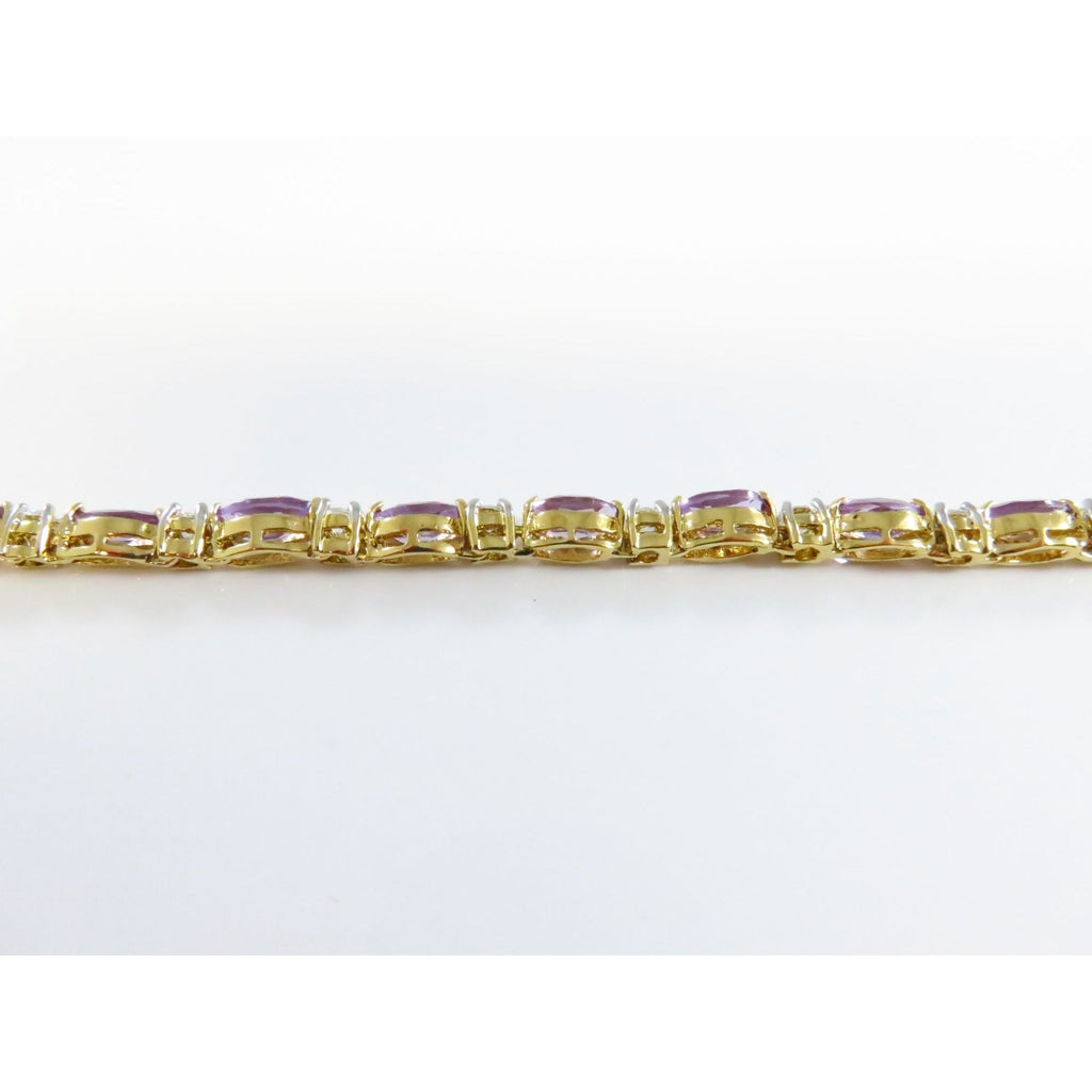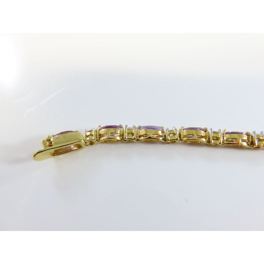 Gold Tone Bracelet W/ Pink Marquise & Clear Glass Stones 7.5"