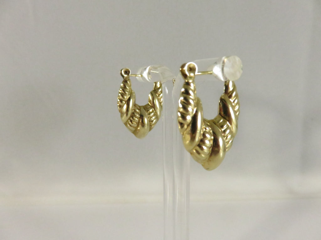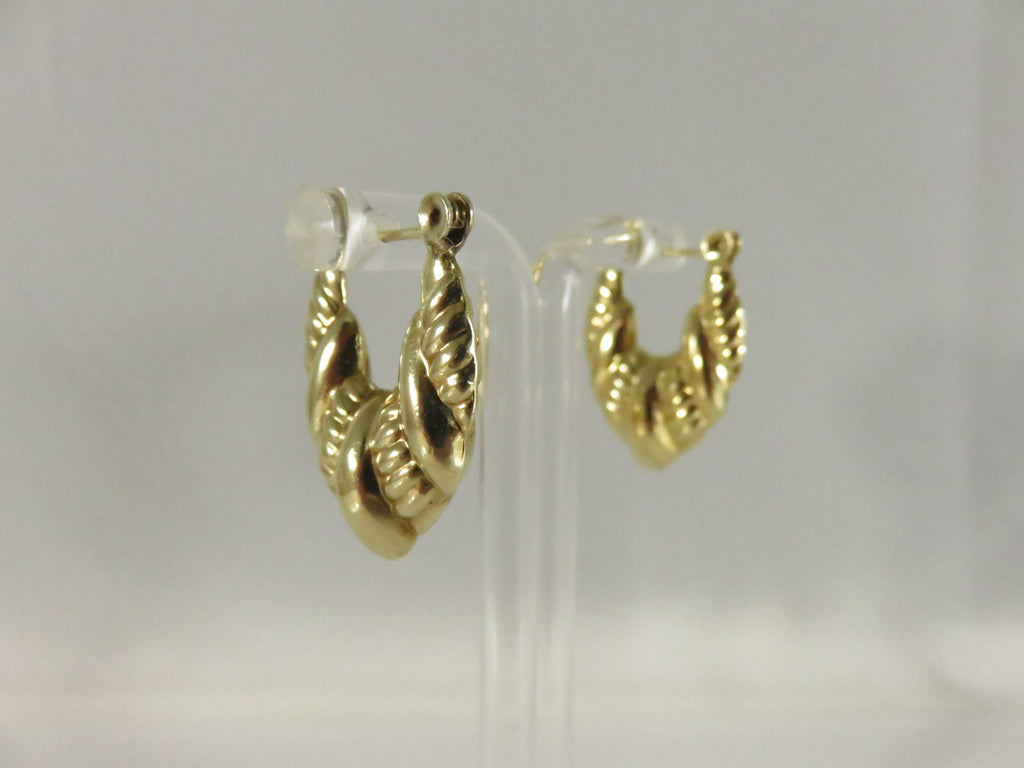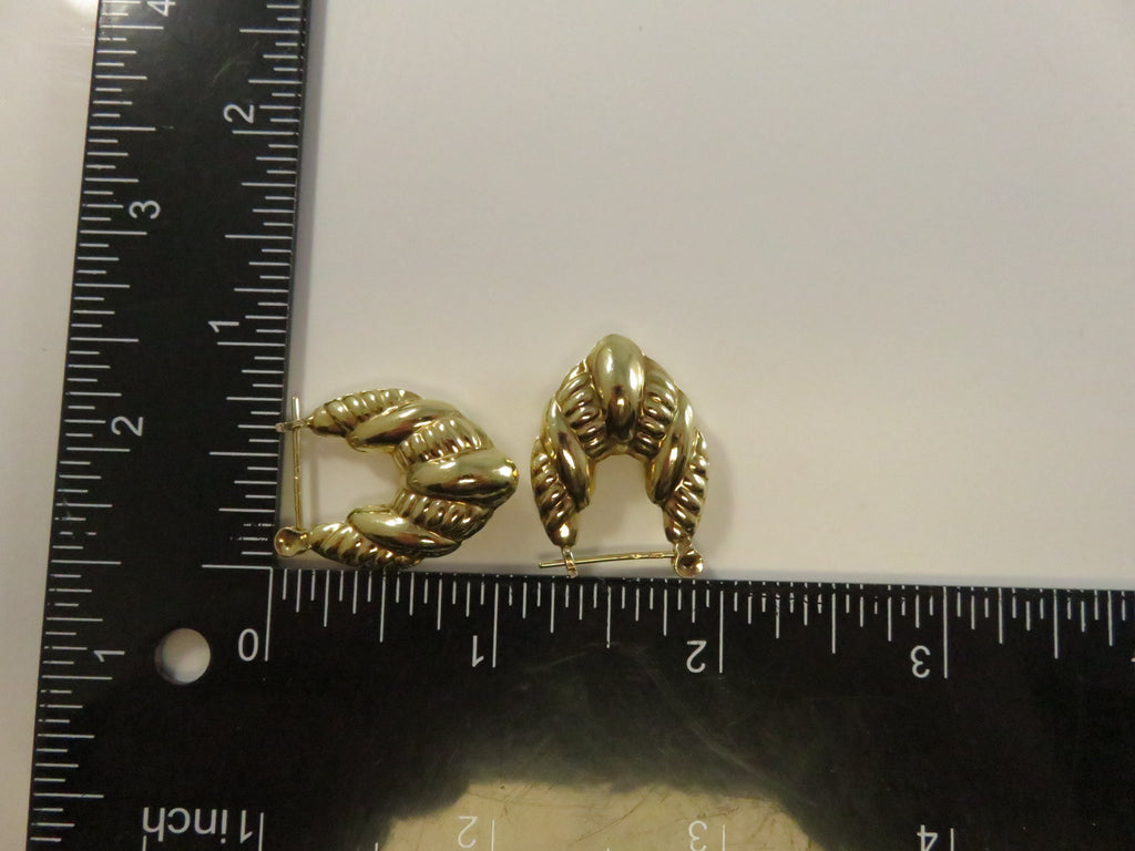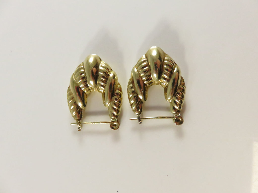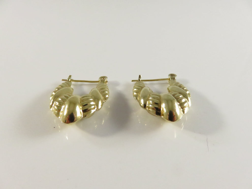 Gold Vermeil Puffy Ribbed Earrings, Sterling Silver, 1" Drop, Vintage Style