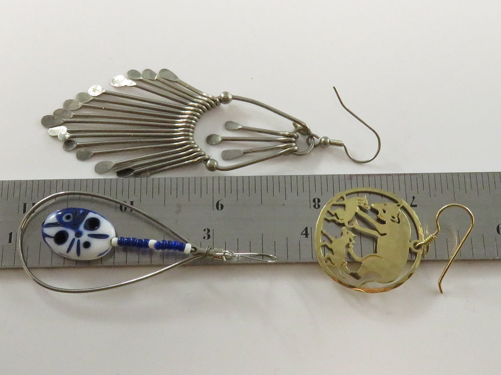 Grouping of 3 Pairs Costume Earrings Ear Wire Chandelier Wild Bryde Artisan Boho