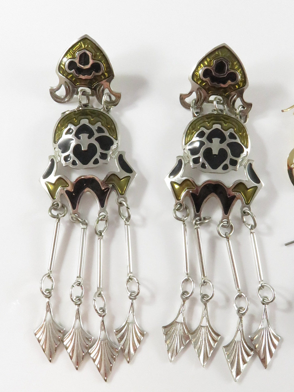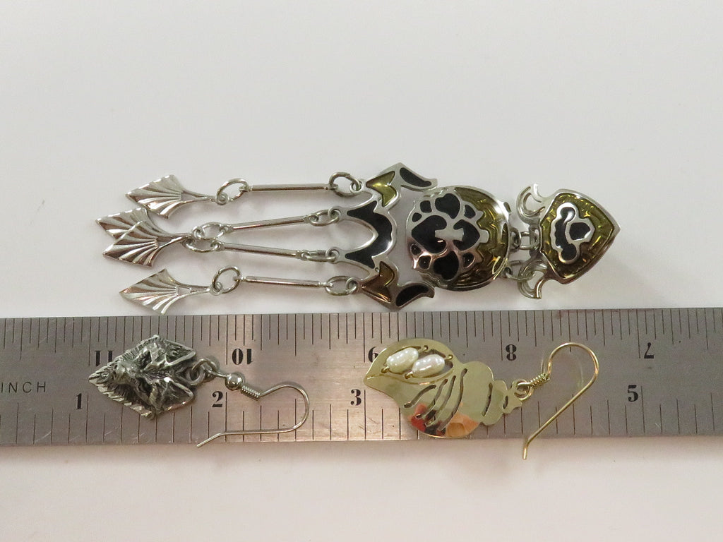 Grouping of 3 Pairs Costume Earrings Ear Wire Post Chandelier Wild Bryde Beribi