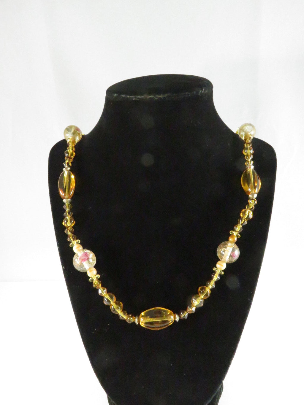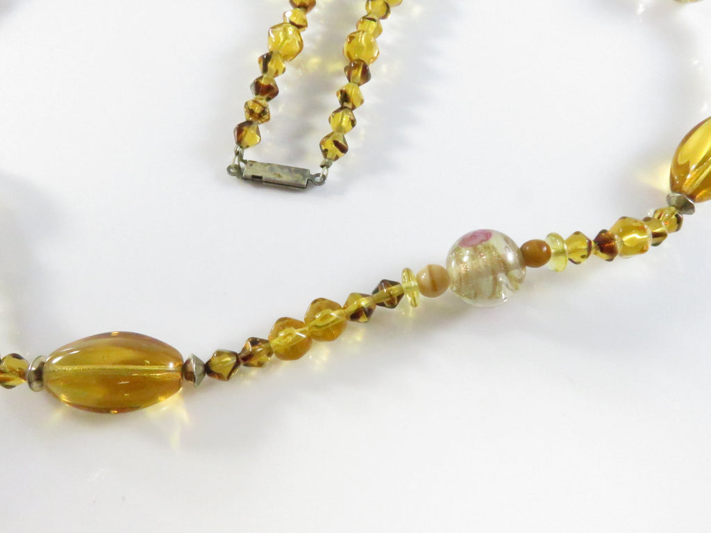 intage 1970s Honey Amber Glass Bead Necklace, 24.5 Inch, Restring
