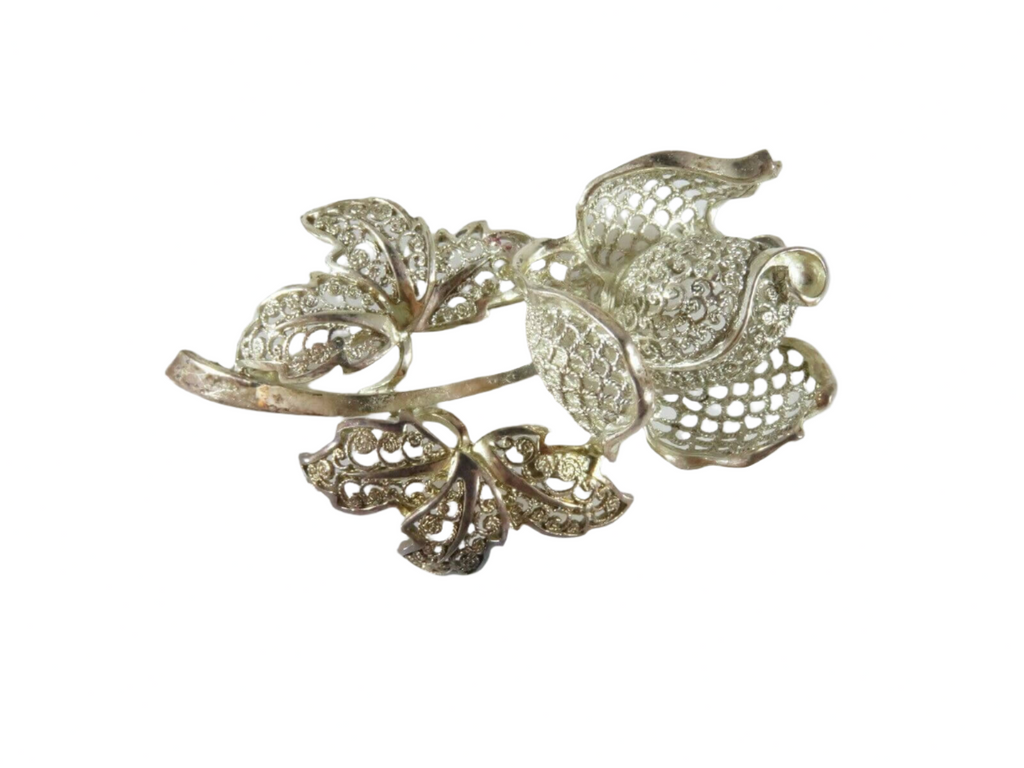 Artisan Filigree Orchid Flower Brooch Sterling Silver Germany Willi Nonnenmann