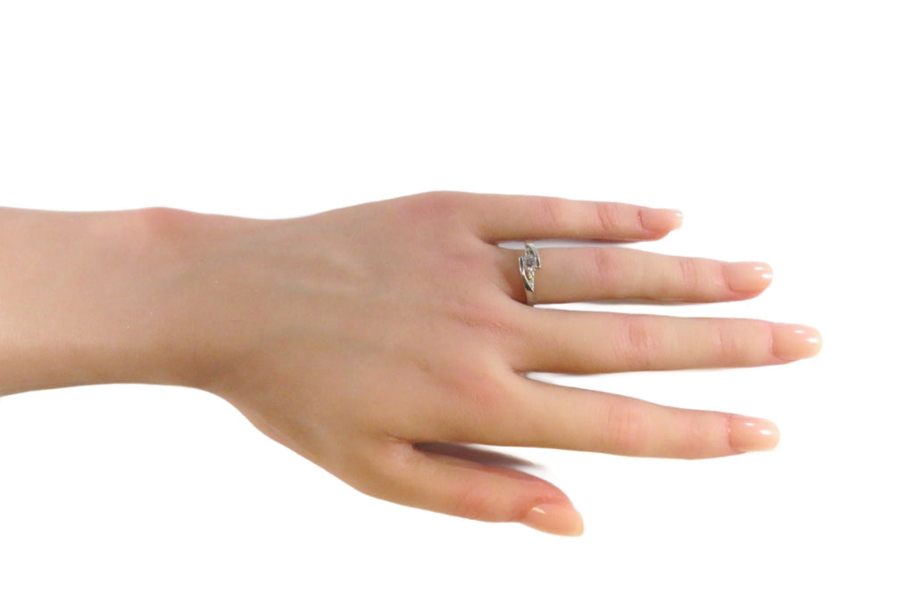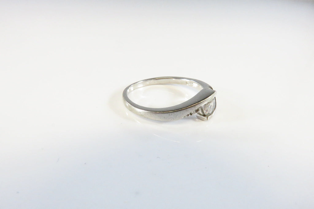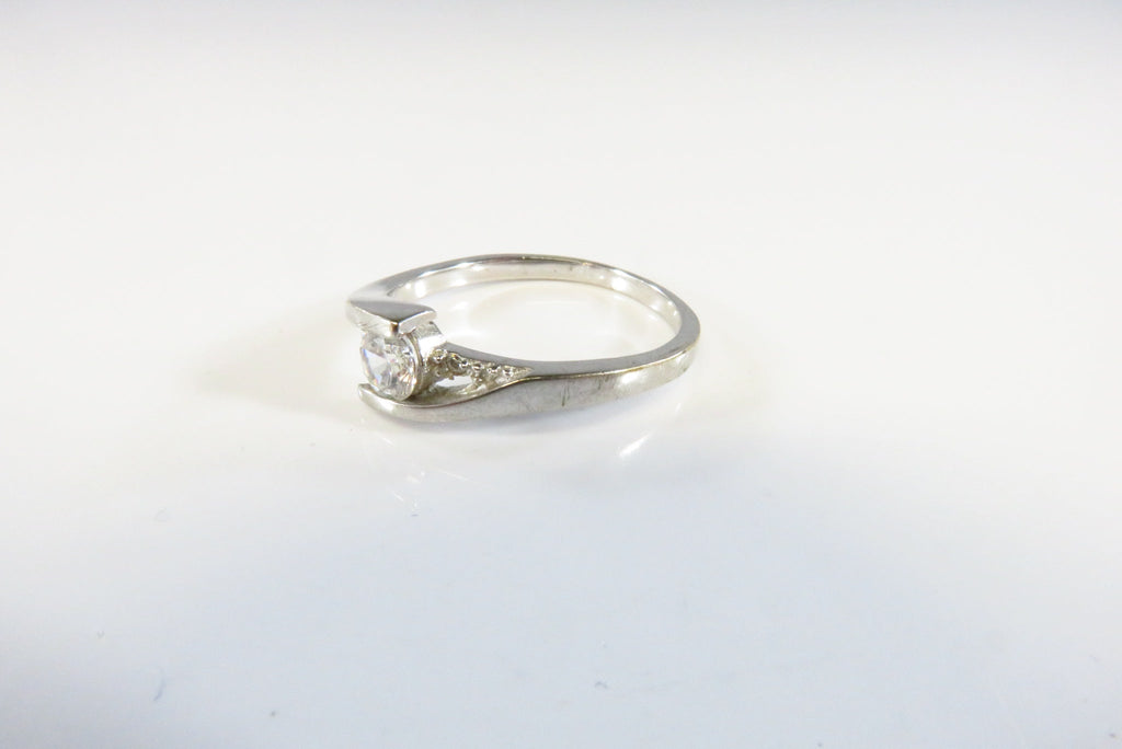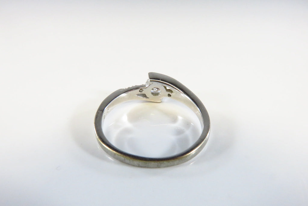 Modernist Bypass Ring in Sterling Silver With Clear Stones Ring Size 7.25
