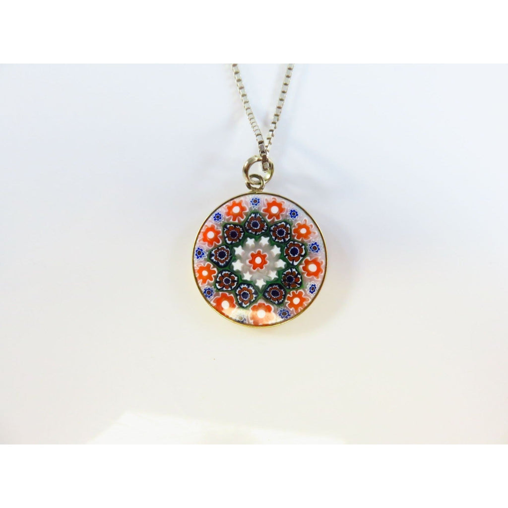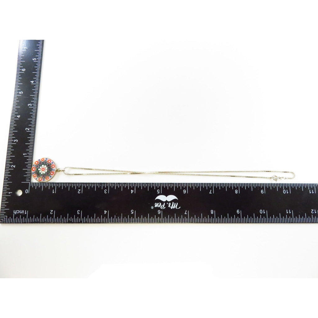 Murano Glass Pendant Necklace With 18.5" Sterling Silver Box Chain & Colorful Floral Design