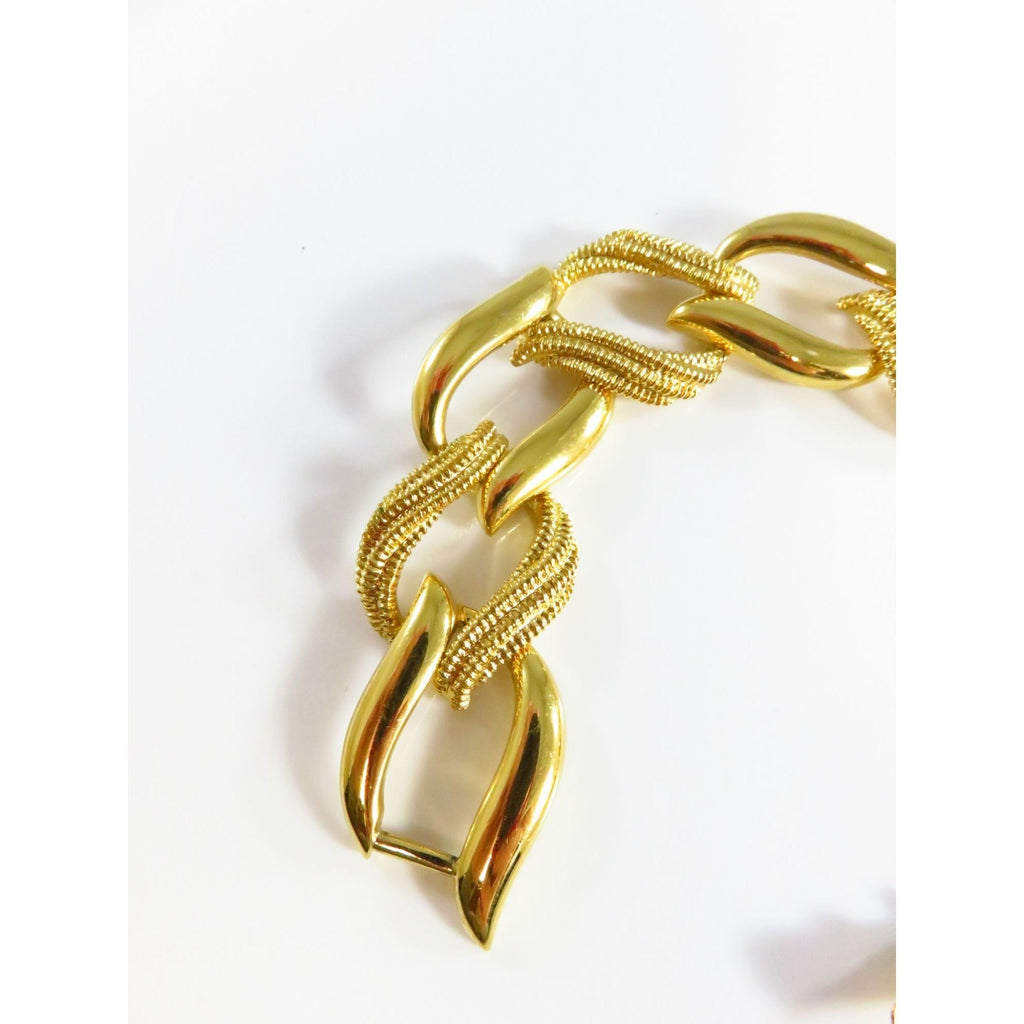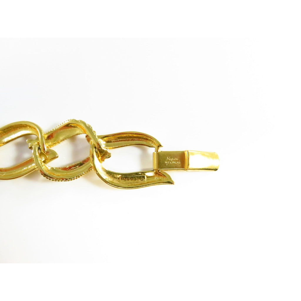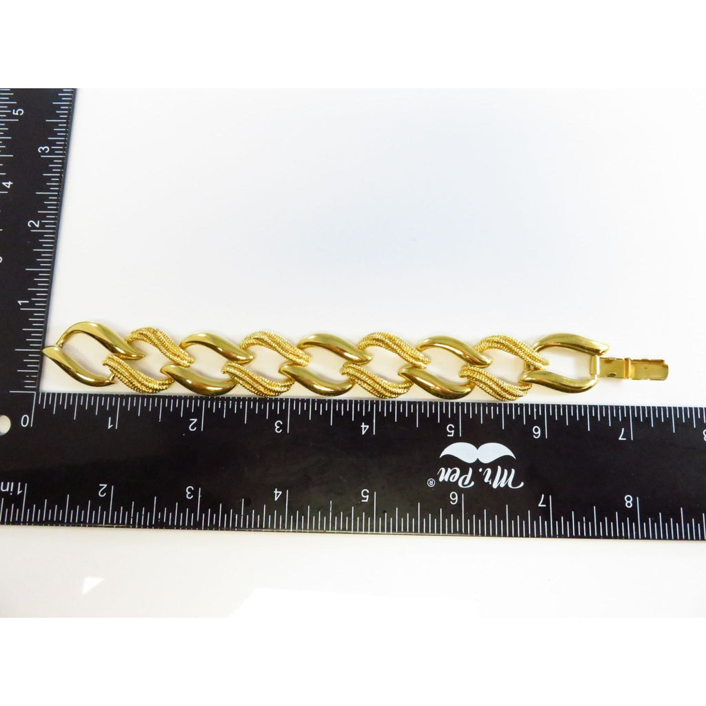 Napier Gold Tone Fashion Bracelet 6 3/4" Long 3/4" Wide With Textured Links & Clasp