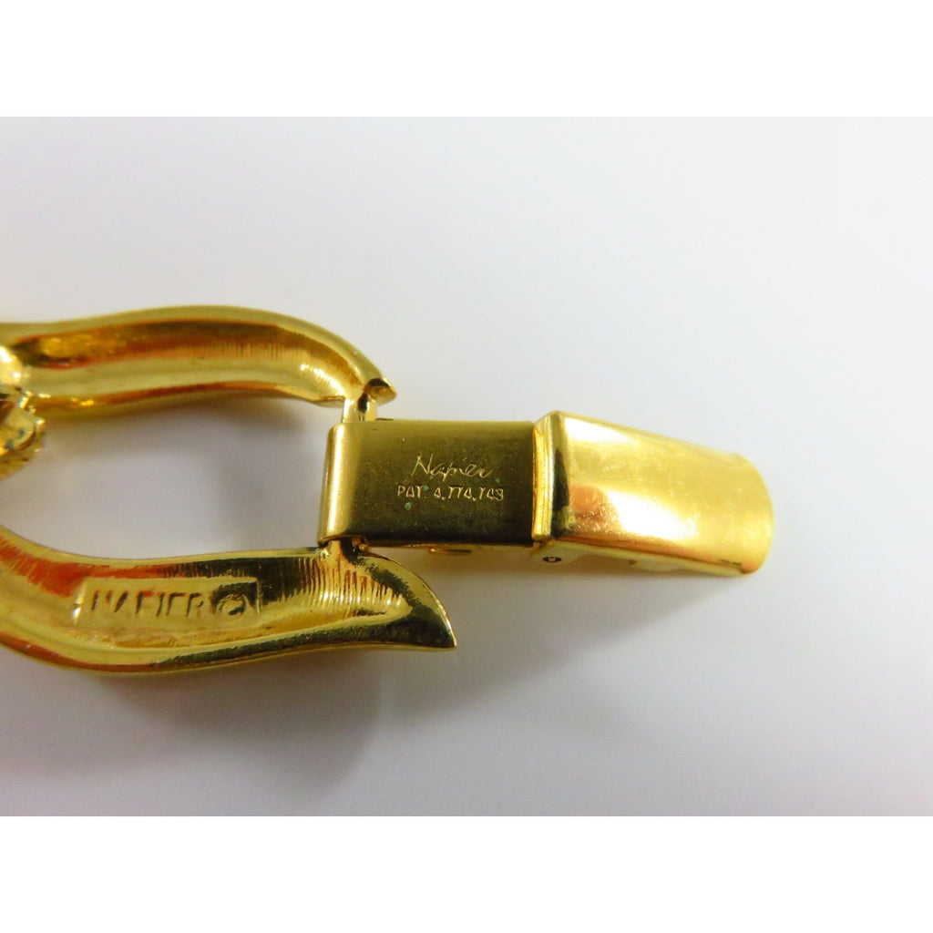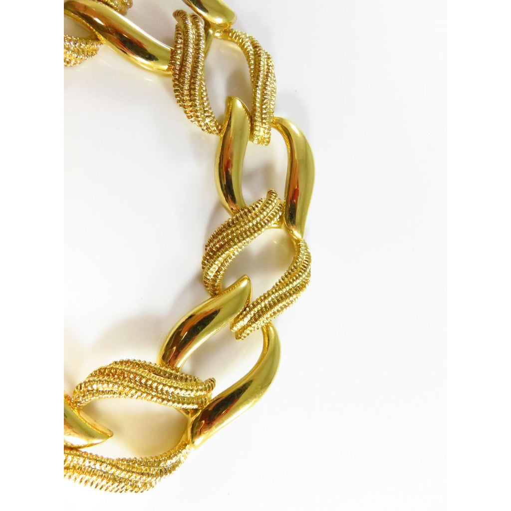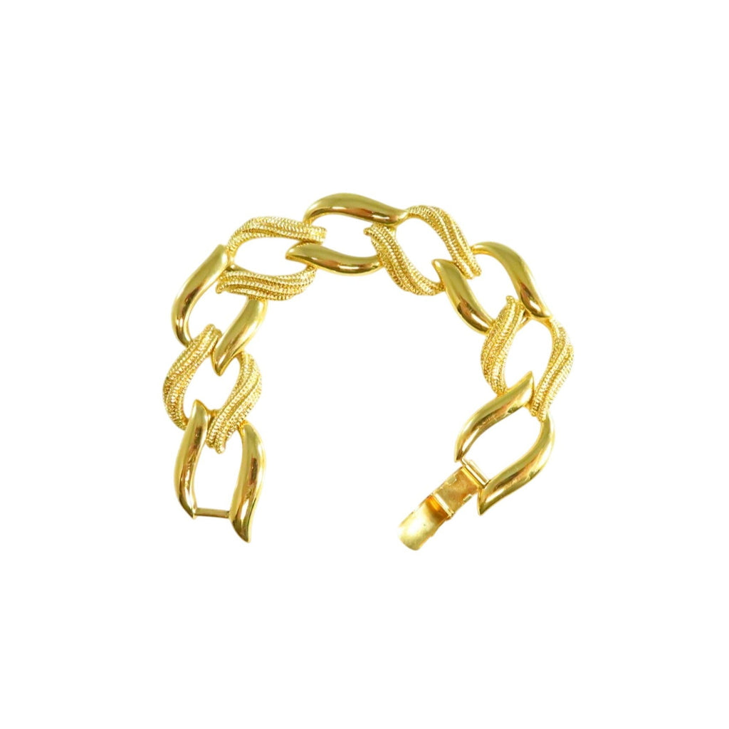Napier Gold Tone Fashion Bracelet 6 3/4" Long 3/4" Wide With Textured Links & Clasp