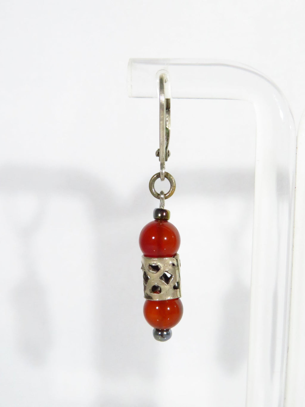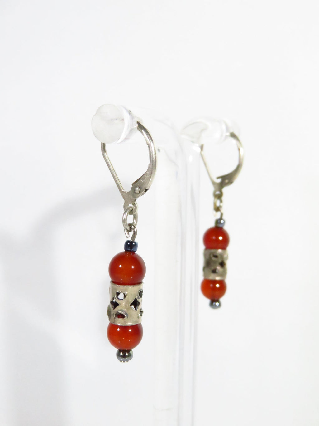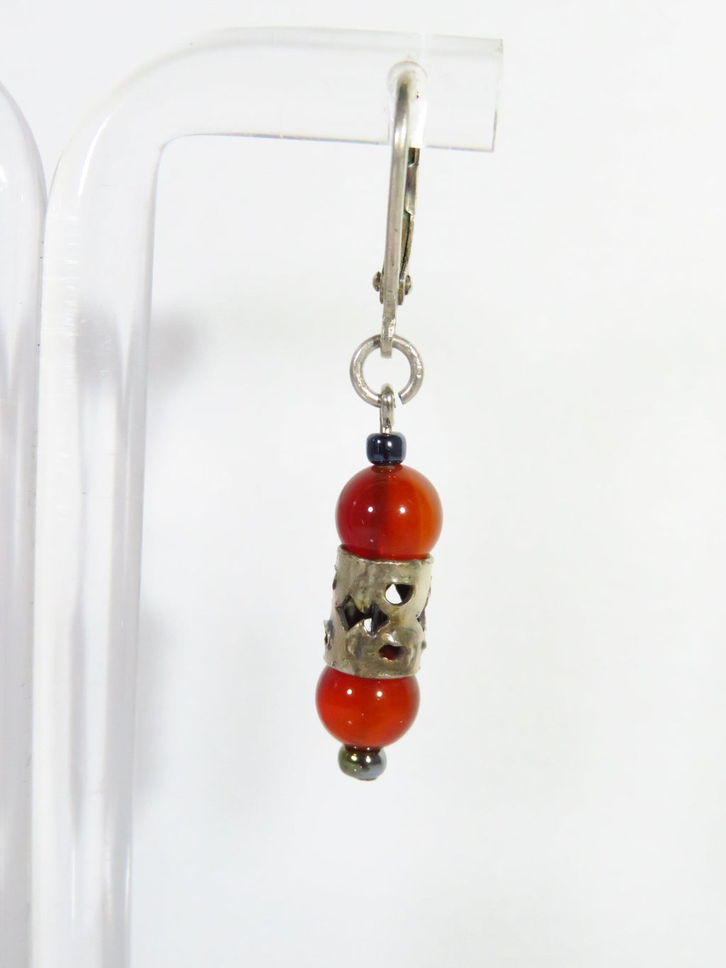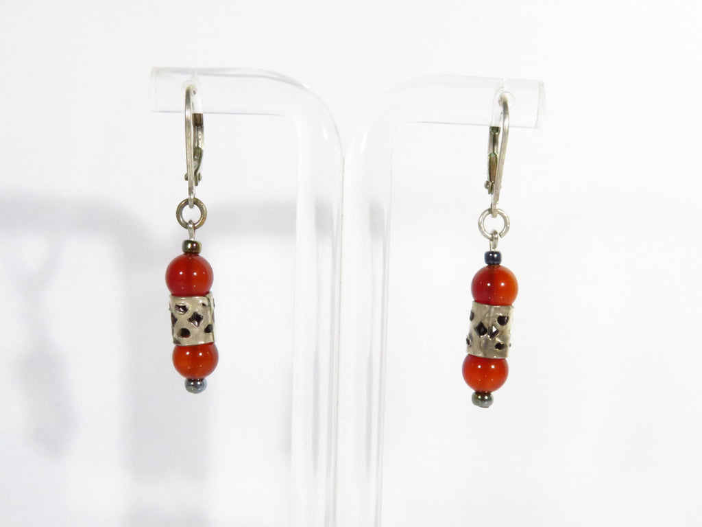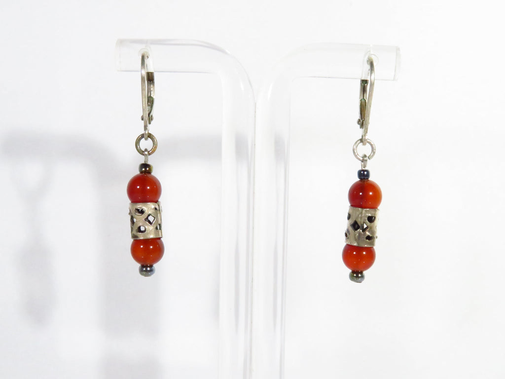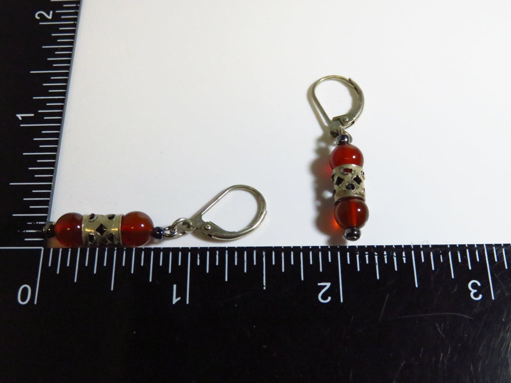 Orange Beaded 1 1/2" Drop Dangle Lever Back Earring in White Metal