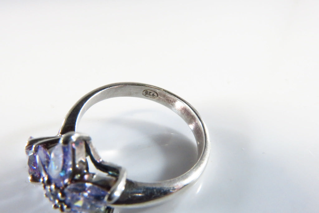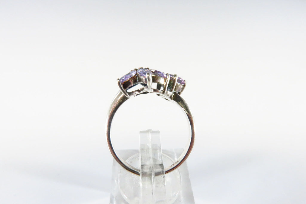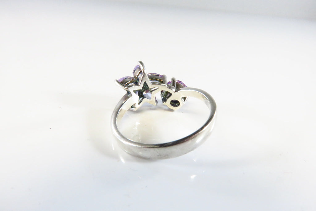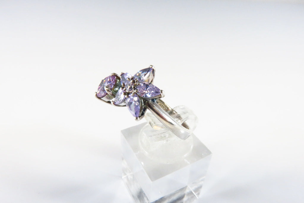 Purple Flower & Sun Sterling & Colored Glass Statement Ring Size 6.75